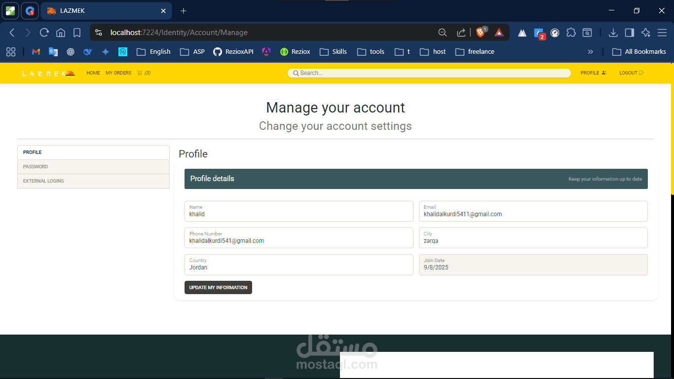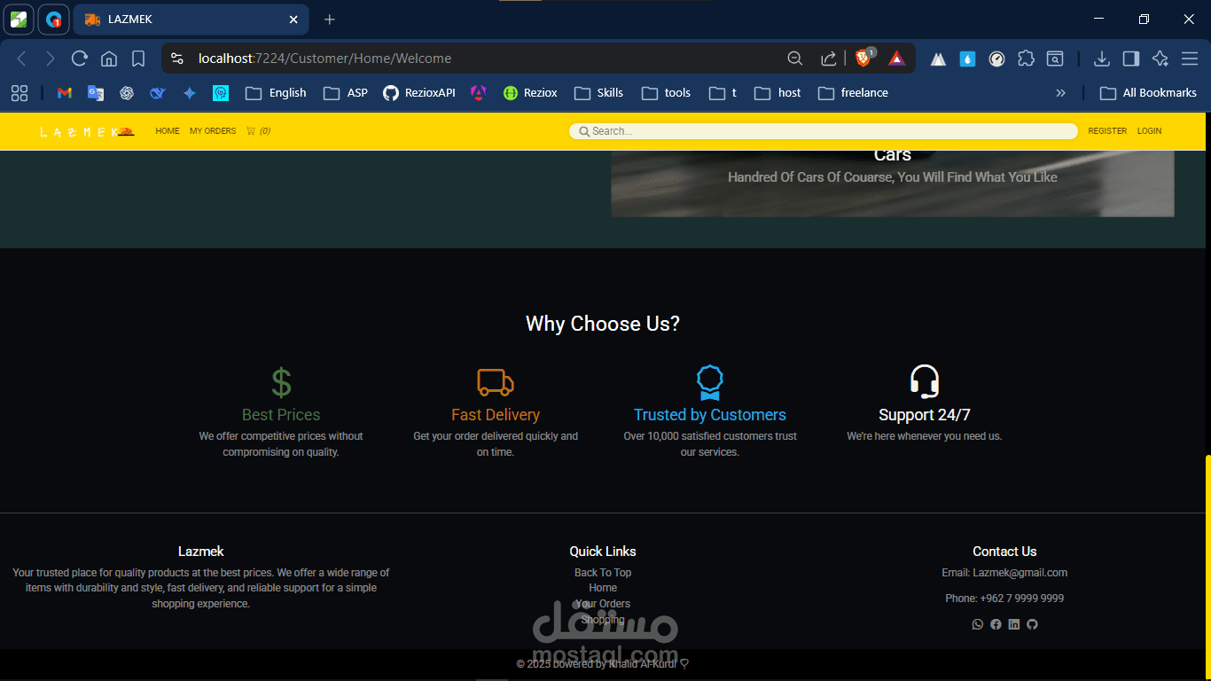 "لازمك" موقع يجمع لك كل ما تحتاجه من المنتجات الأساسية في مكان واحد. يوفّر تجربة سهلة، بحث سريع، وتصنيفات واضحة تساعد المستخدم على الوصول لاحتياجه فورًا، مع إمكانية الطلب، المتابعة، والدفع بطريقة مريحة وآمنة.