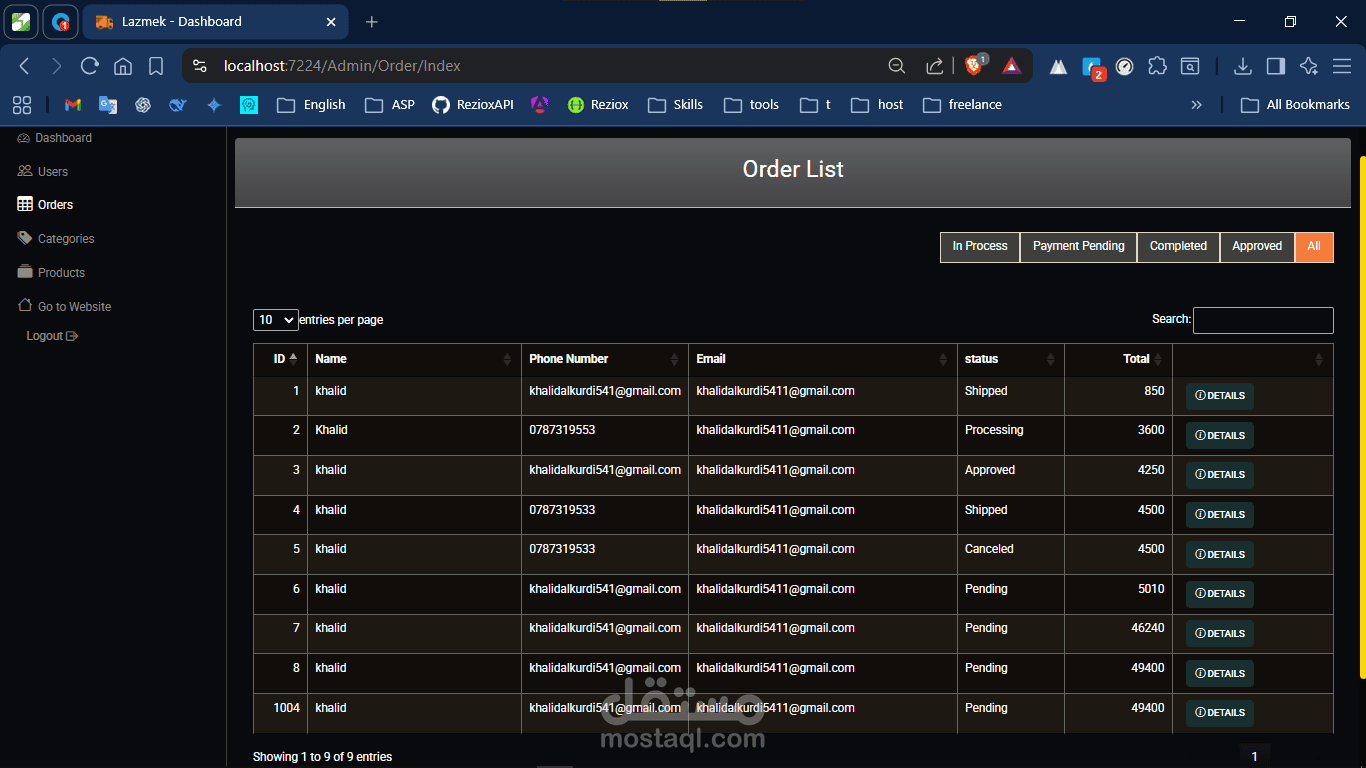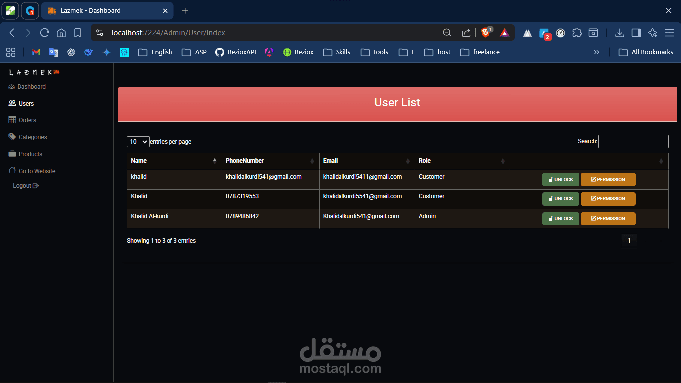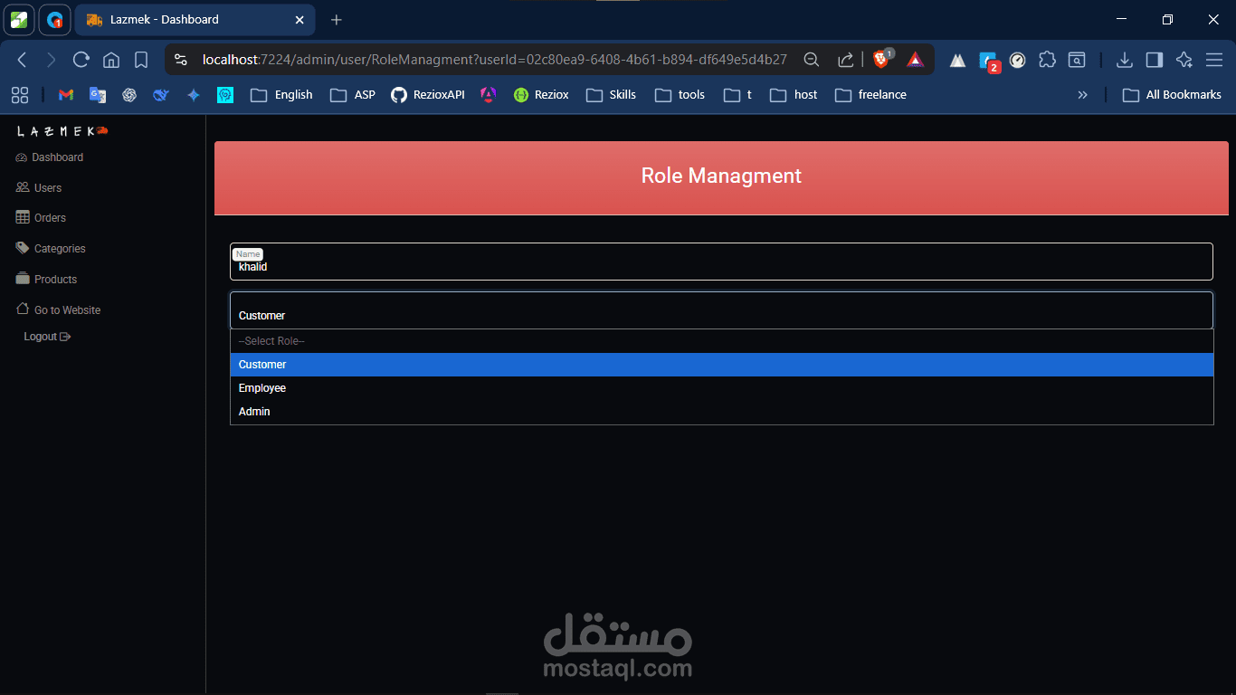 لوحة ويب مبنية بـAsp.net MVC لإدارة كامل النظام.