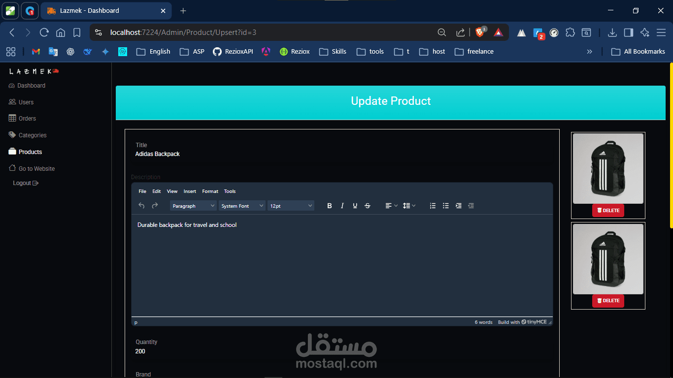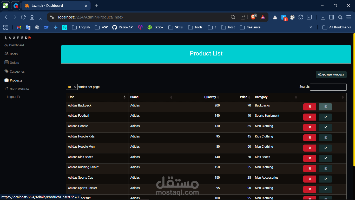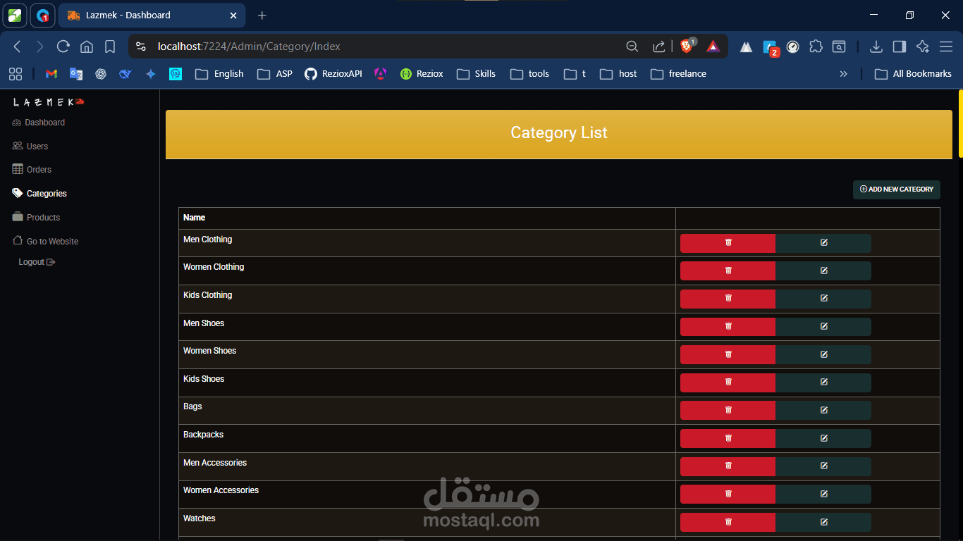 لوحة ويب مبنية بـAsp.net MVC لإدارة كامل النظام.