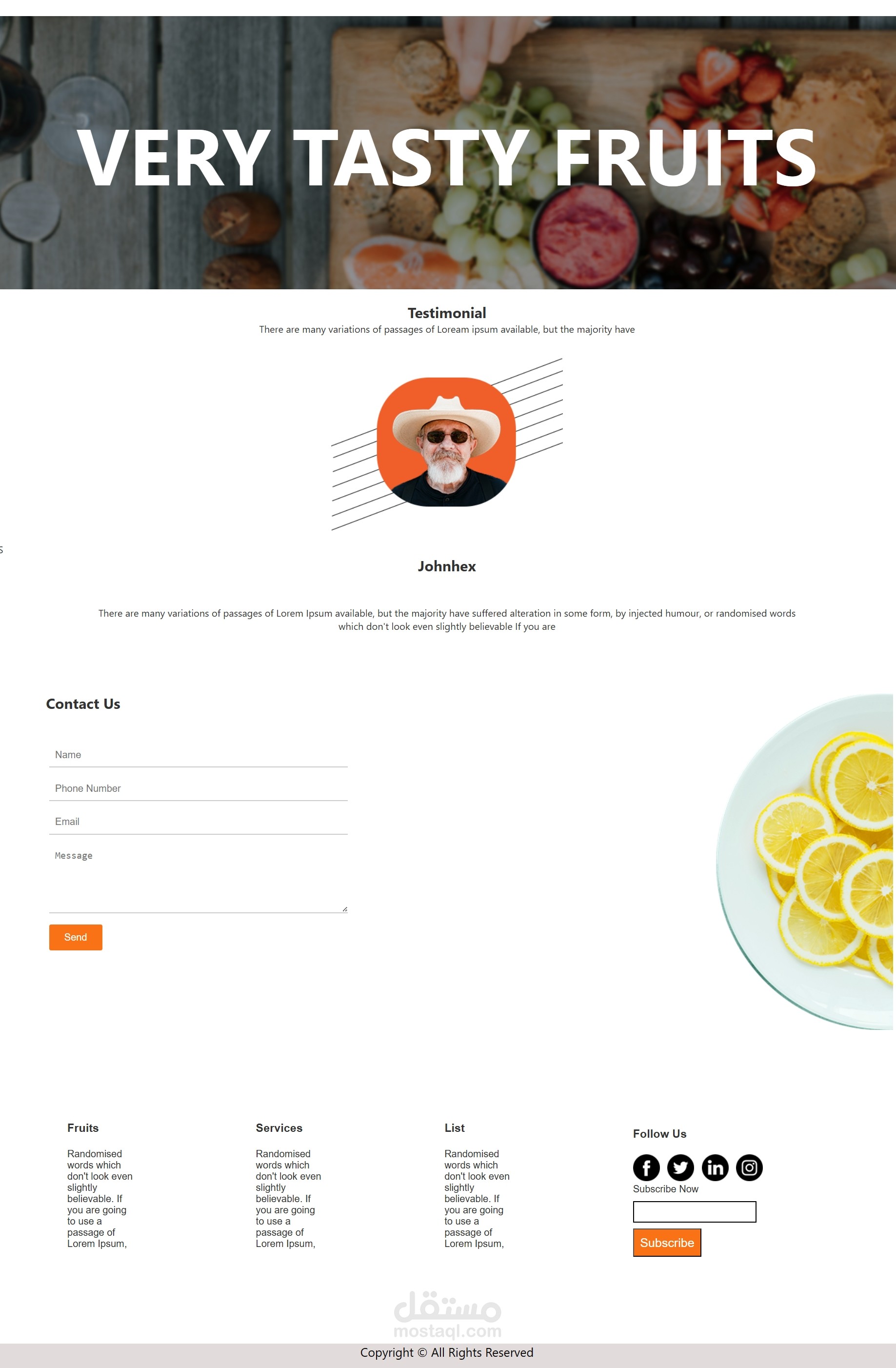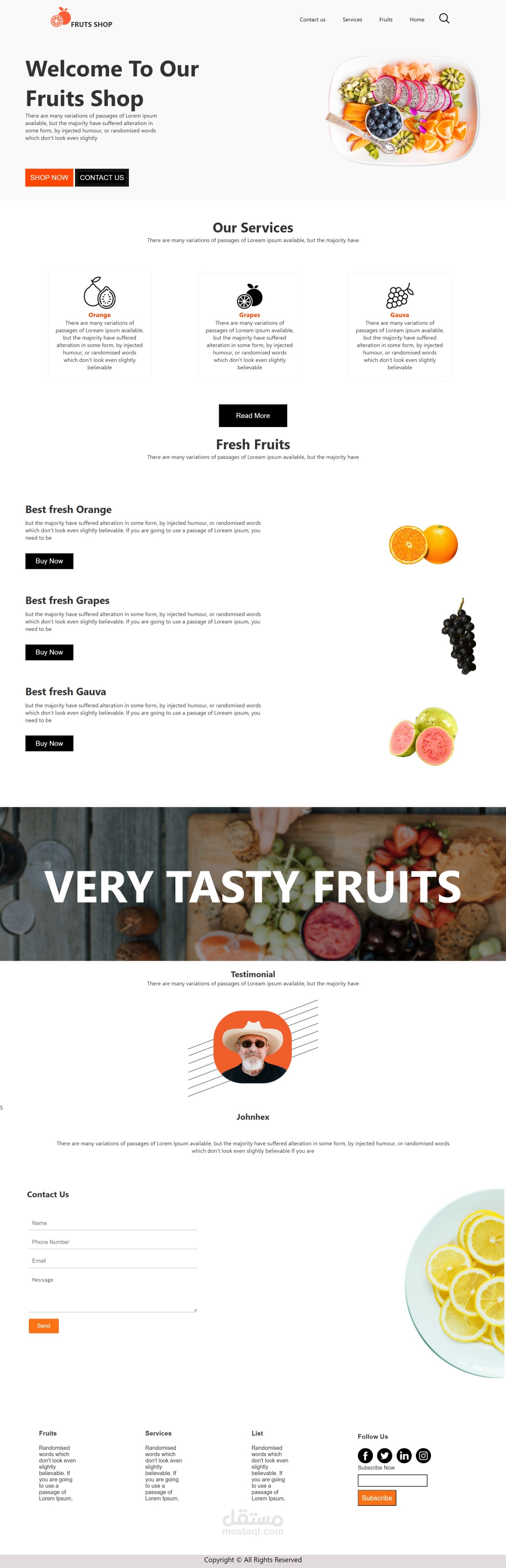صفحه هبوط لمتجر فواكه تصميم ( انيق- احترافي -متجاوب)