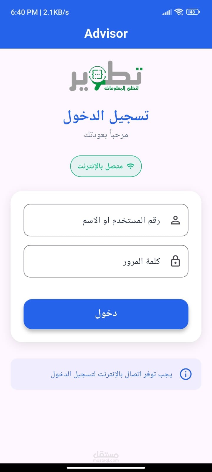 تطبيق 'Adviosr' مخصص لتنظيم وإدارة عمليات المبيعات للشركات، حيث يوفّر تجربة سلسة وفعّالة لمندوبي المبيعات.