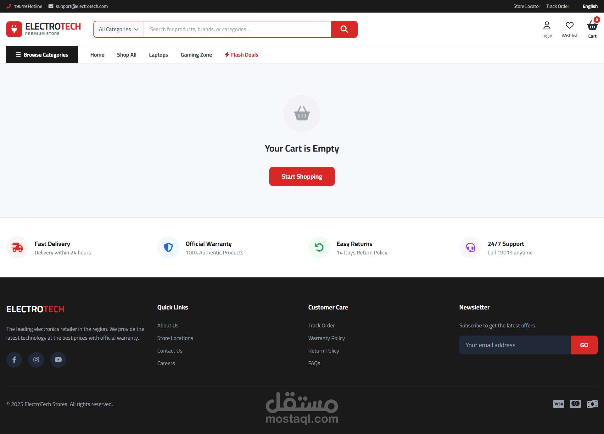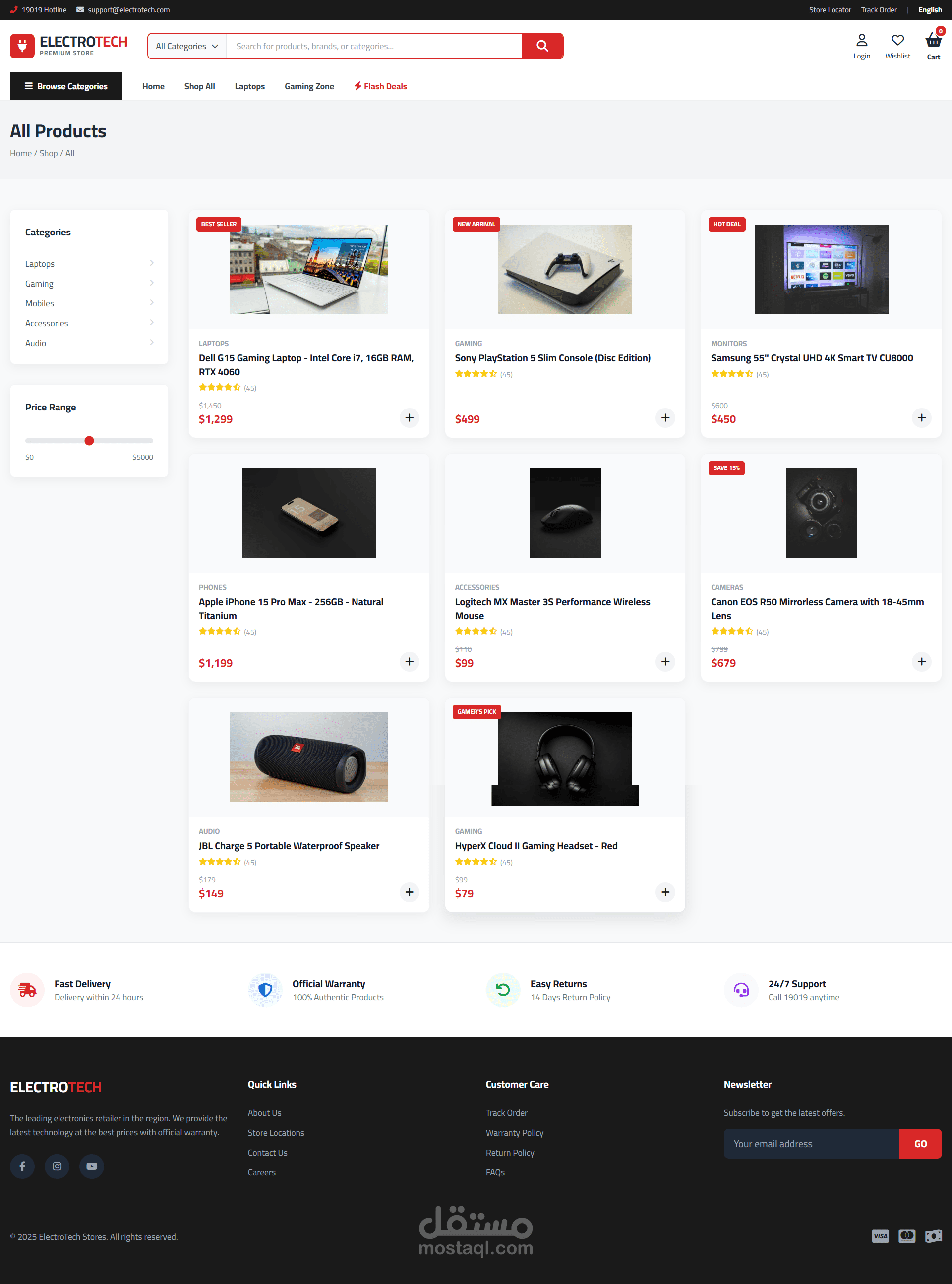 تطبيق ويب لصفحة واحدة (SPA) يحاكي تجربة المتاجر الإلكترونية الكبرى في المنطقة (مثل B.TECH)، مع التركيز على التصميم الاحترافي وسرعة الأداء.