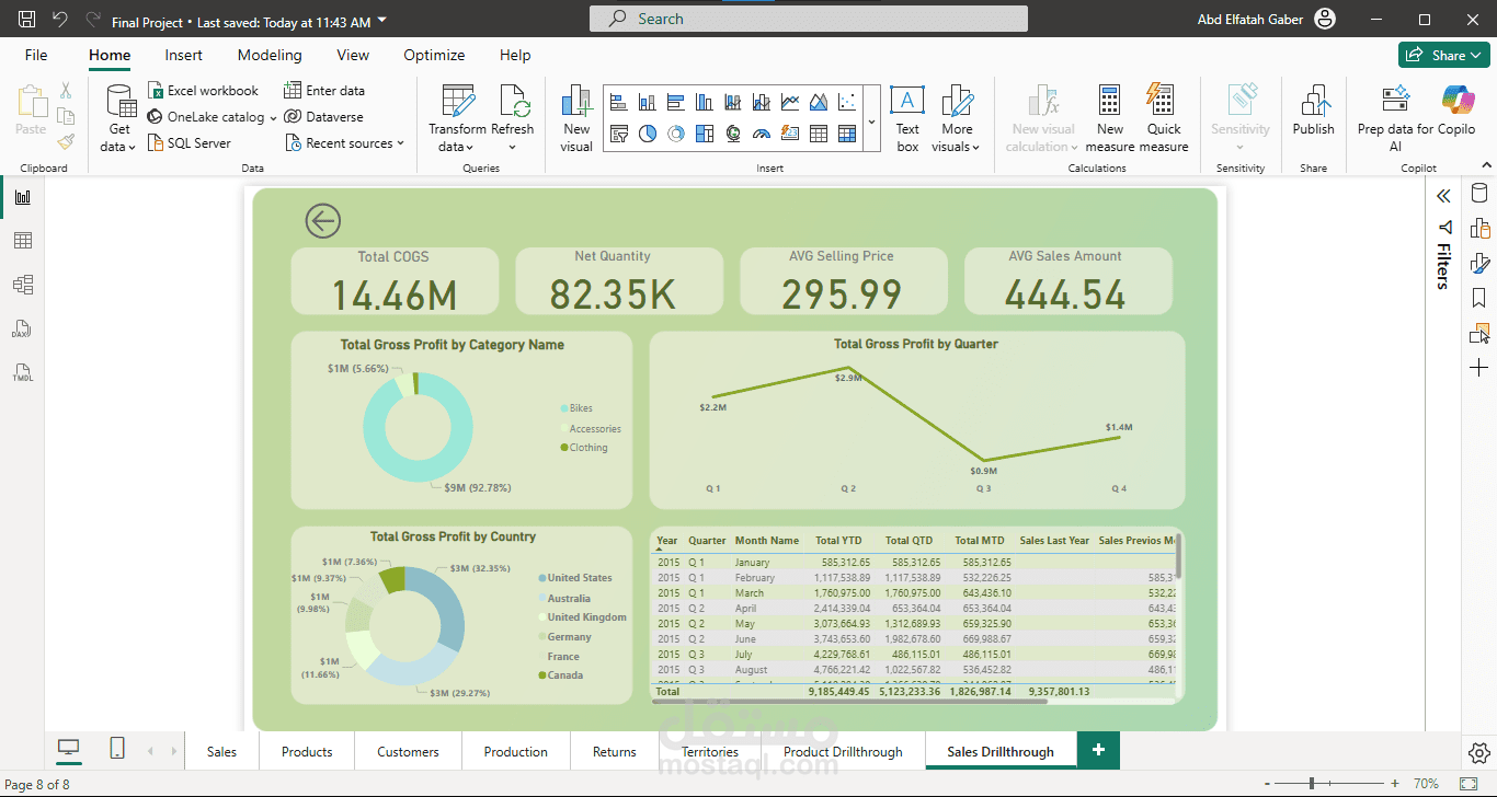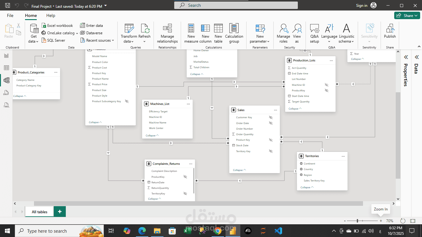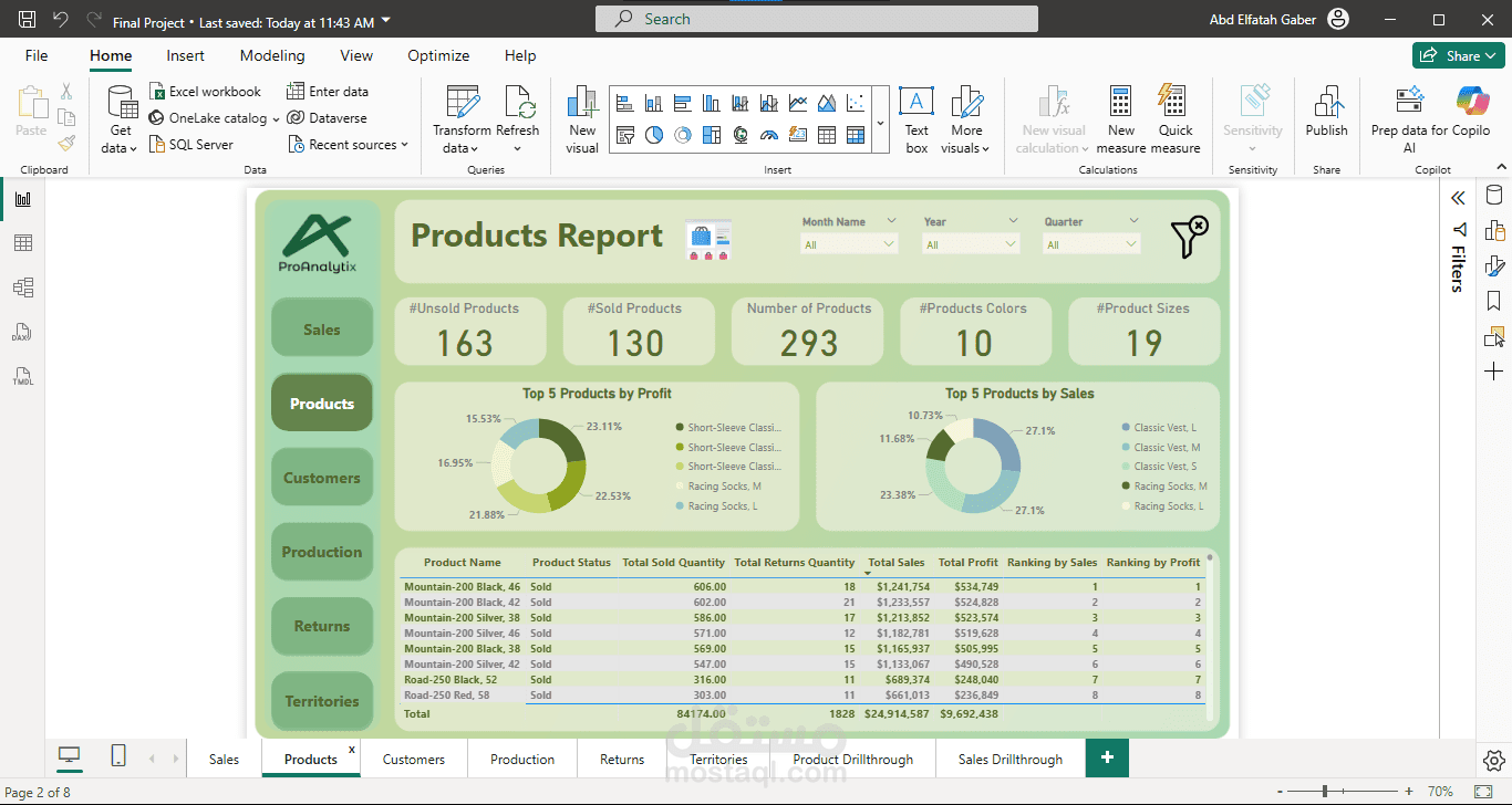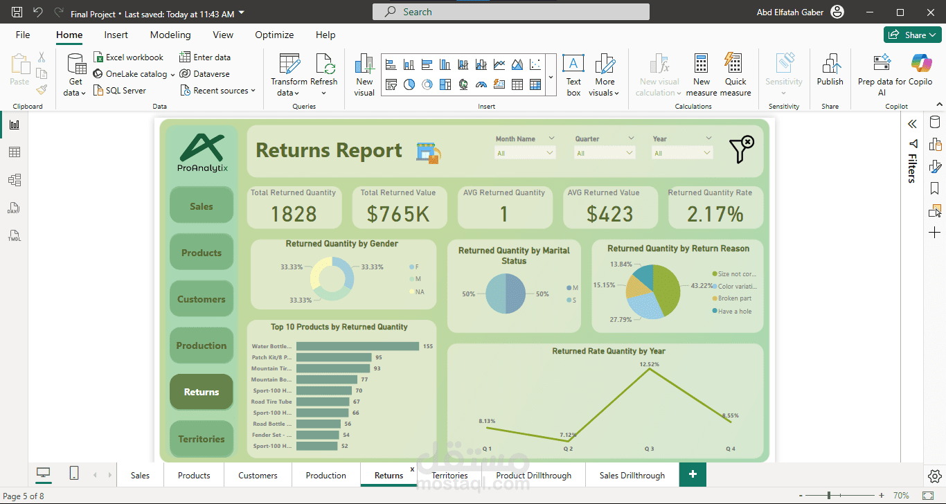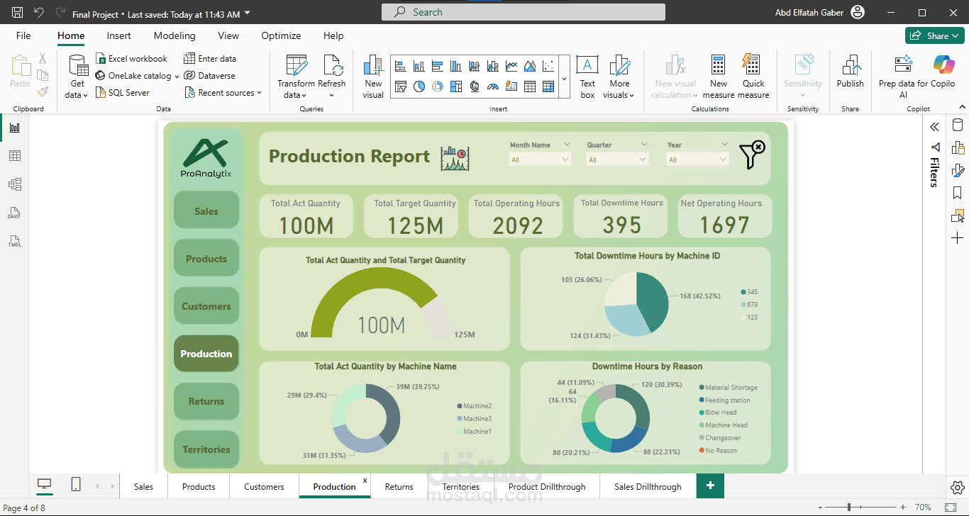 Modeled 8+ interconnected datasets and enhanced 8 dashboards with 20+ KPIs covering customers, products, categories, production lots,