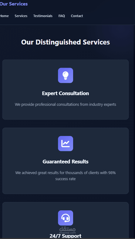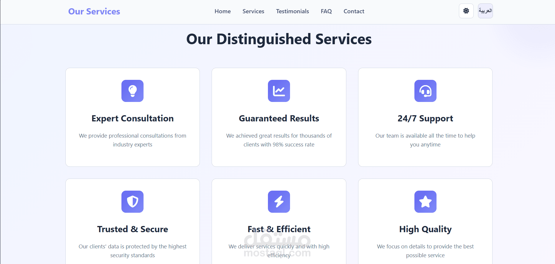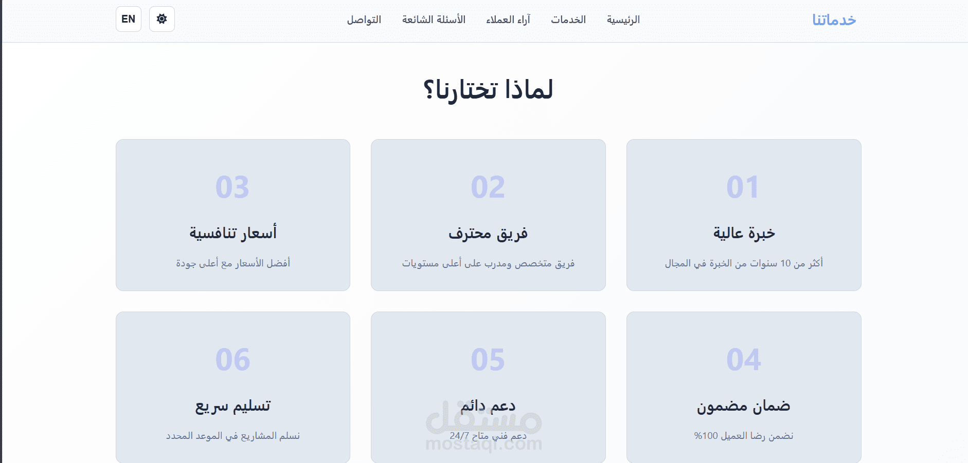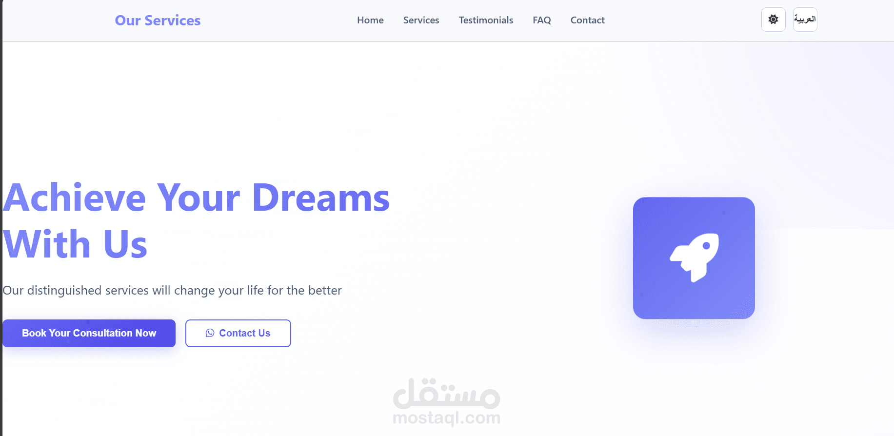 صفحة هبوط حديثة وجذابة مع تصميم داكن وأنيميشنات سلسة. صفحة واحدة فقط تركز على تحويل الزوار إلى عملاء.