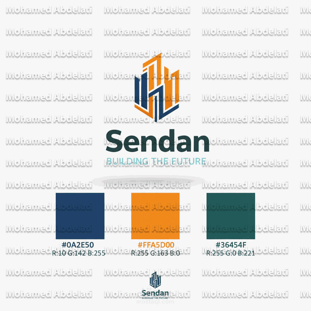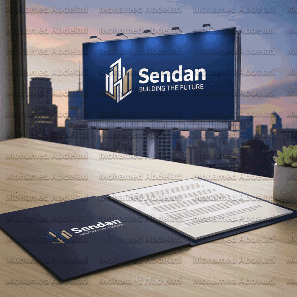 "Sendan" تلتزم بـ "بناء المستقبل" من خلال كل مشروع تقوم به، معتمدة على هوية بصرية قوية تعكس قيمها الأساسية في الابتكار، الجودة، والرؤية المتقدمة.