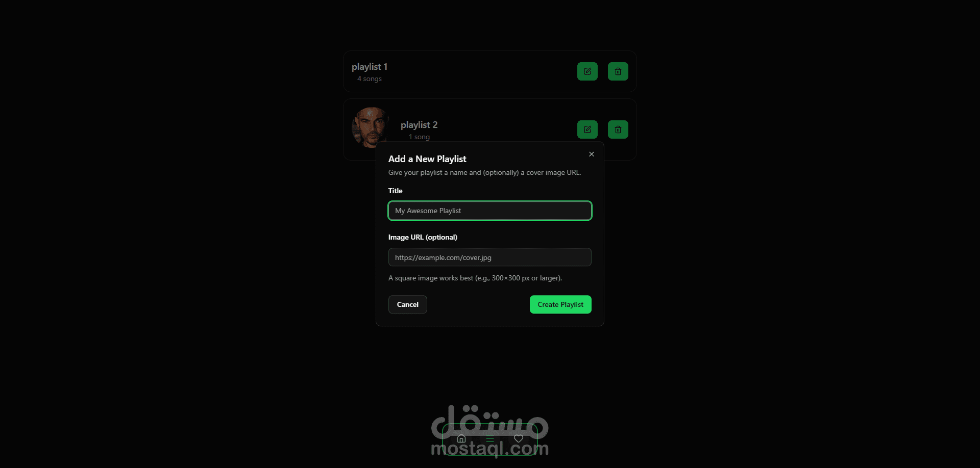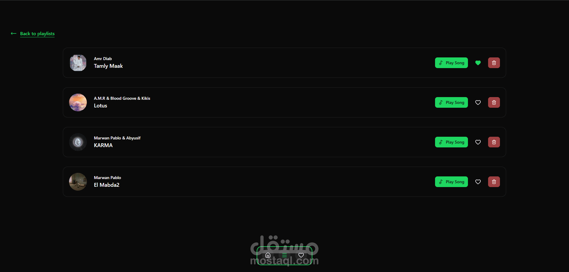 Musico هو تطبيق موسيقى تفاعلي مستوحى من تجربة Spotify، يتيح للمستخدم استعراض الأغاني، البحث عنها عبر قائمة منسدلة ديناميكية، وإضافة الأغاني إلى المفضلة أو إلى قوائم تشغيل مخصصة. يوفر التطبيق نظام إدارة Playlists مرن، مع شريط تشغيل ثابت بأسفل الصفحة للتحكم في الأغنية الحالية (تشغيل، إيقاف، تنقّل بين الأغاني) على غرار Spotify. تم بناء المشروع باستخدام React مع التركيز على إدارة الحالة، تجربة المستخدم، والكود النظيف القابل لإعادة الاستخدام، بالإضافة إلى تصميم واجهات متجاوبة وسلسة تعكس تطبيقات الموسيقى الحديثة.