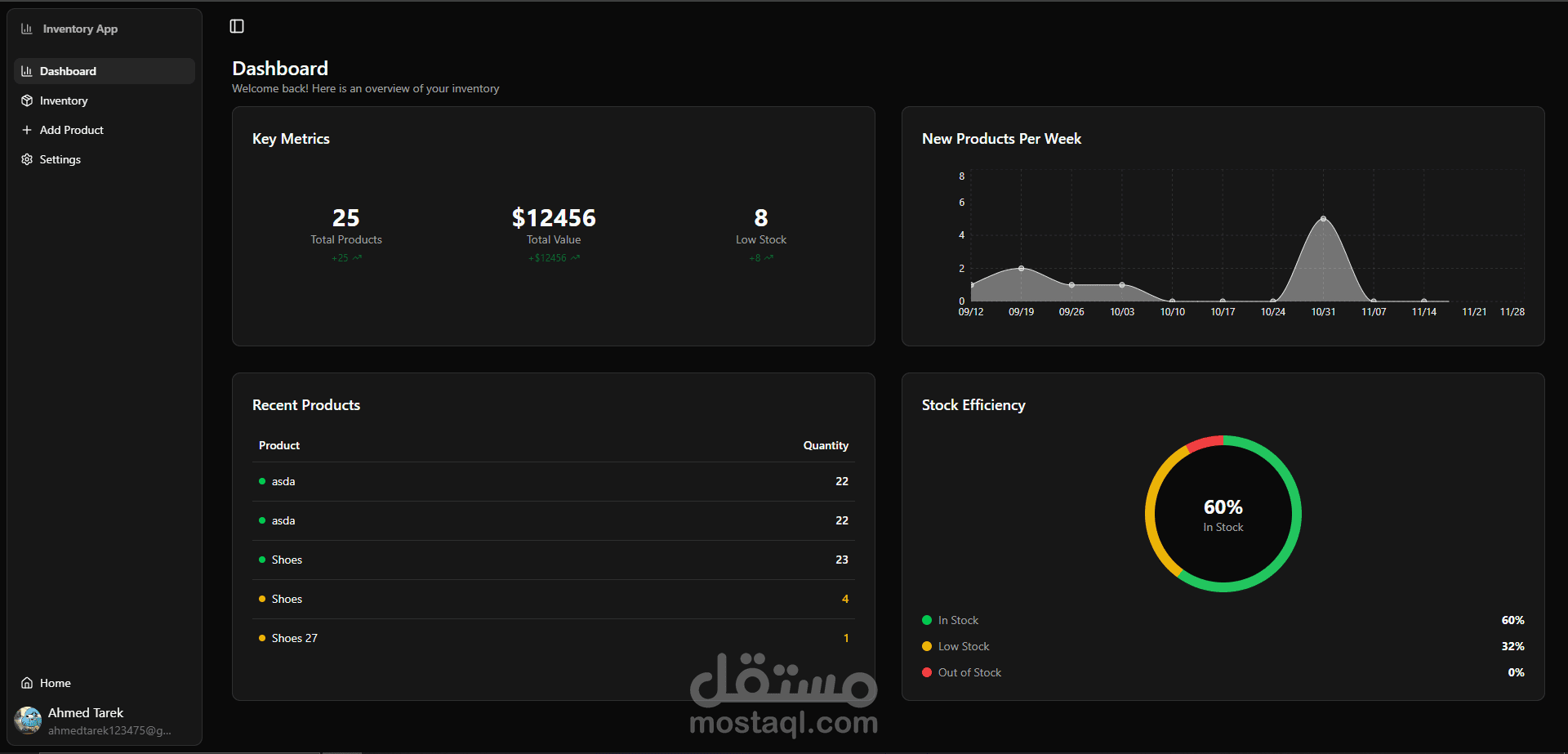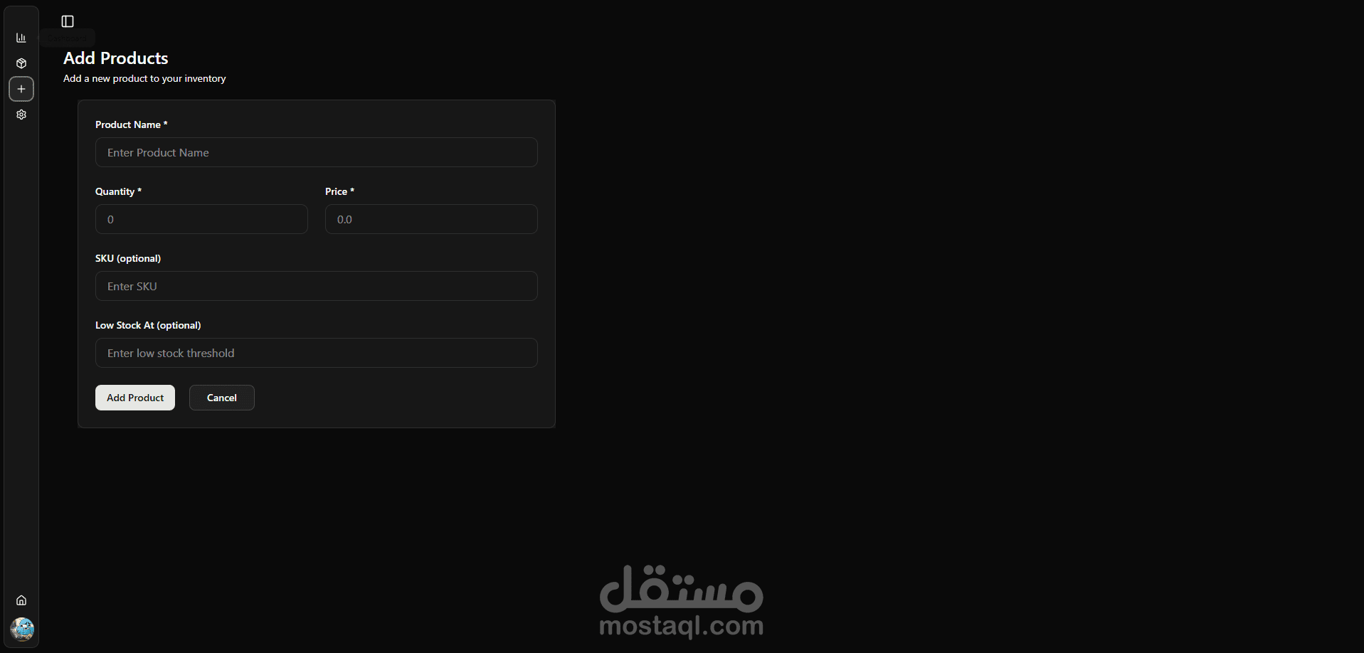 Inventrico هو نظام إدارة مخزون عصري ومتكامل مصمم خصيصاً لأصحاب الأعمال والشركات الصغيرة والمتوسطة. التطبيق يوفر لك لوحة تحكم ذكية تقدر من خلالها تتابع كل منتجاتك بشكل فوري مع رسوم بيانية تفاعلية وإحصائيات شاملة عن المخزون والقيمة الإجمالية. تقدر تضيف وتعدل وتحذف المنتجات بسهولة، وتحدد الأسعار والكميات ورموز المنتجات، والنظام راح ينبهك تلقائياً لما أي منتج يقرب يخلص من المخزون. التطبيق مبني بأحدث التقنيات زي Next.js وTypeScript وPrisma، ويتميز بتصميم أنيق ومريح للعين مع دعم كامل للوضع الليلي والاستخدام على جميع الأجهزة. النظام آمن تماماً ويضمن خصوصية بياناتك مع واجهة سهلة الاستخدام ما تحتاج أي تدريب معقد، وجاهز يساعدك تنظم مخزونك بكفاءة واحترافية من اليوم الأول.