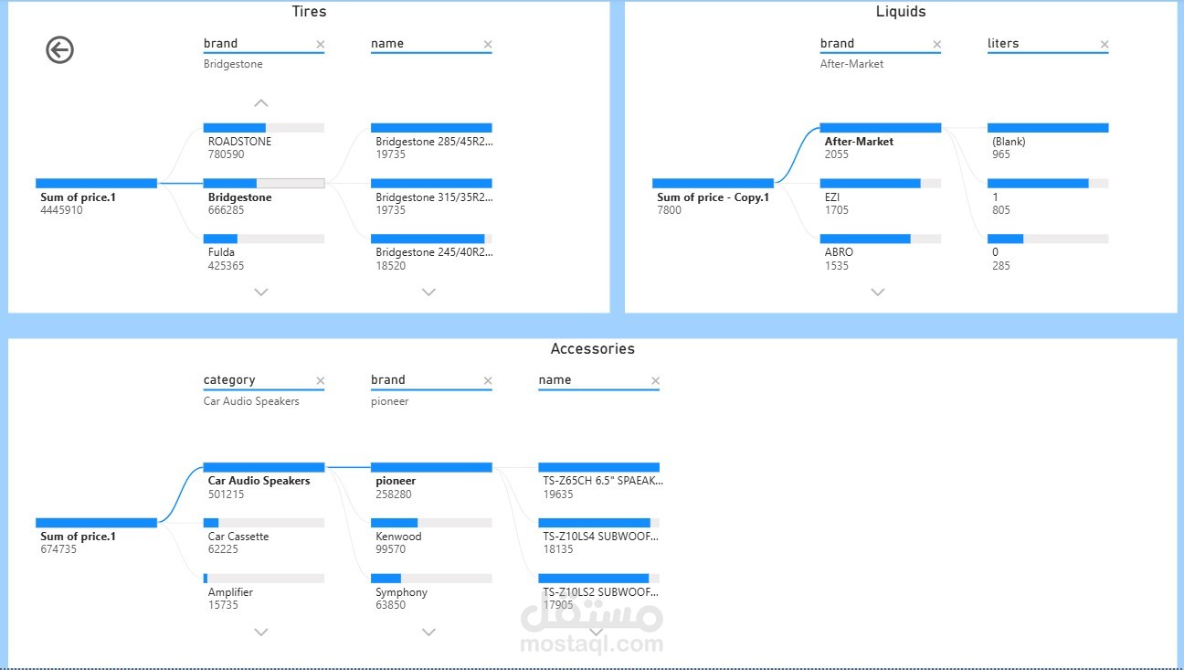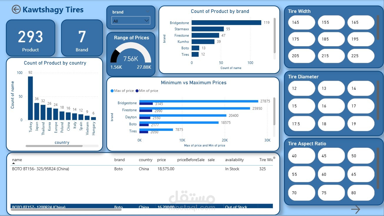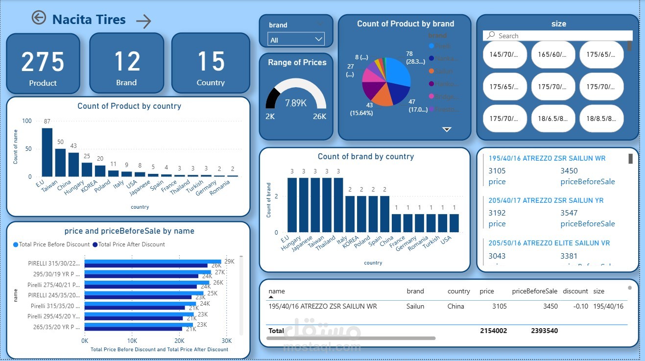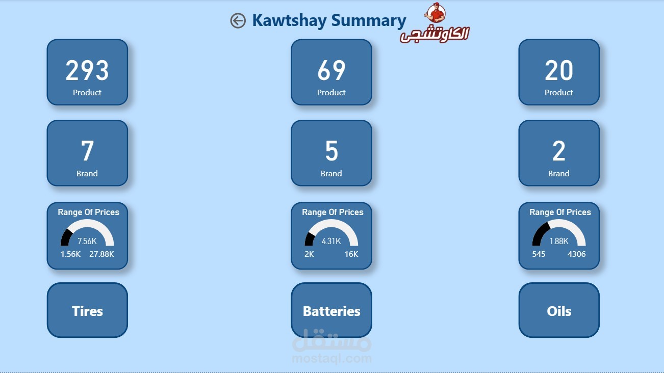 قمت بتطوير داشبورد تفاعلية متكاملة باستخدام Power BI بهدف تحليل أسعار قطع غيار السيارات المجمّعة من عدة مواقع ومنصات بيع مختلفة. تعتمد الداشبورد على بيانات تم جمعها من خلال Web Scraping ثم تنظيفها ومعالجتها لعرض رؤية واضحة عن اختلافات الأسعار واتجاهات السوق.