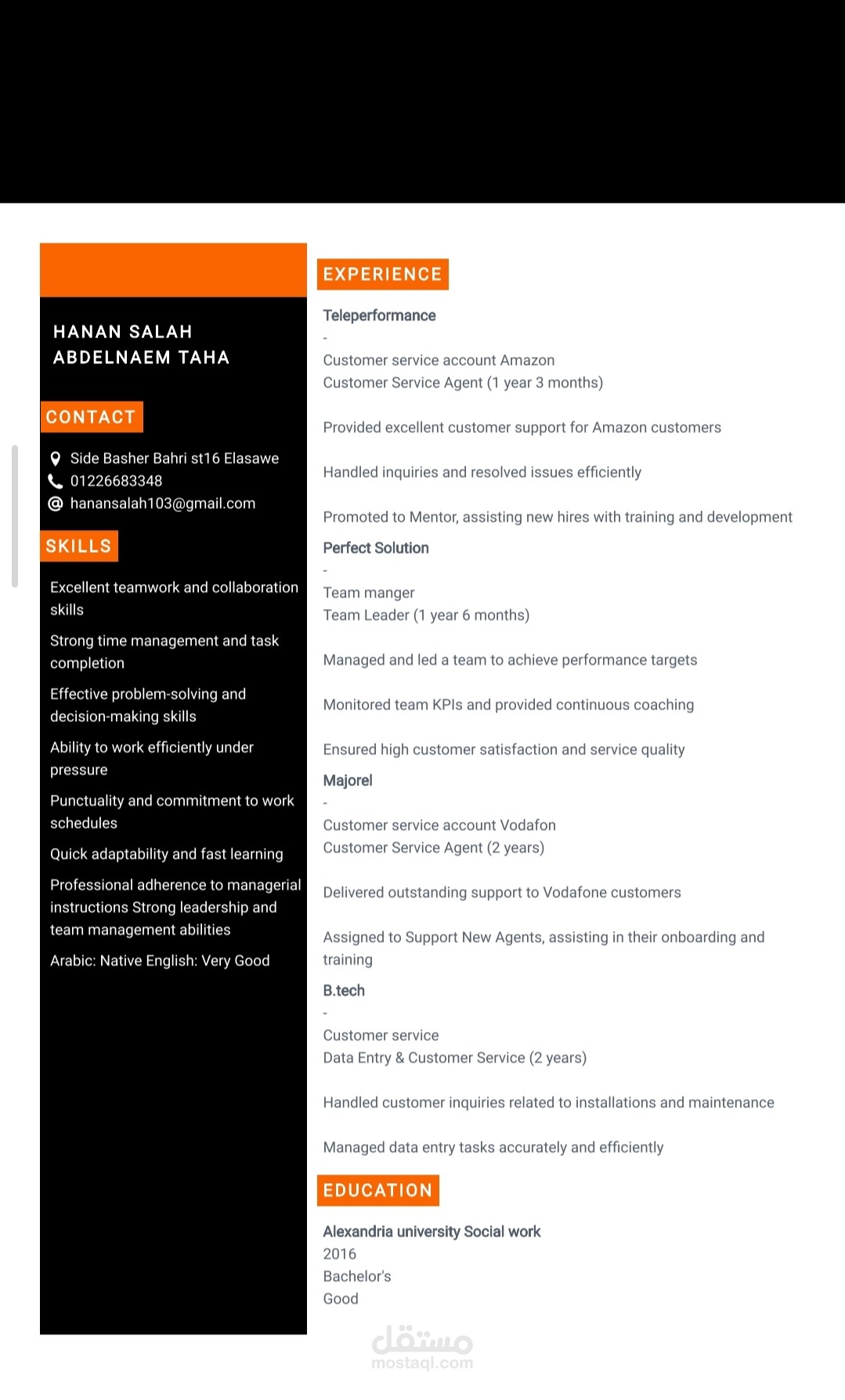 أتميز باللباقة، السرعة، والدقة، والقدرة على العمل تحت ضغط وبناء علاقات إيجابية مع العملاء عبر السوشيال ميديا.