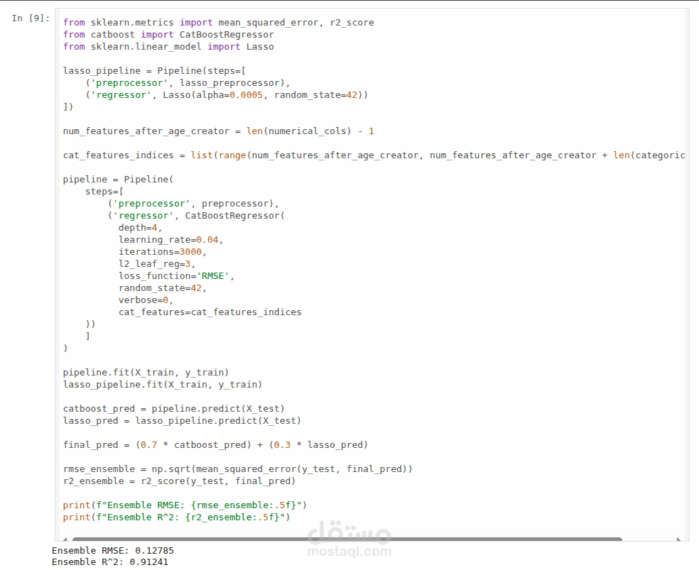 المشكلة في الـ Datasets الصغيرة هي الـ Overfitting. لذلك، بدلاً من الاعتماد على خوارزمية واحدة، قمت بدمج قوة الـ Gradient Boosting مع استقرار الـ Linear Models.
