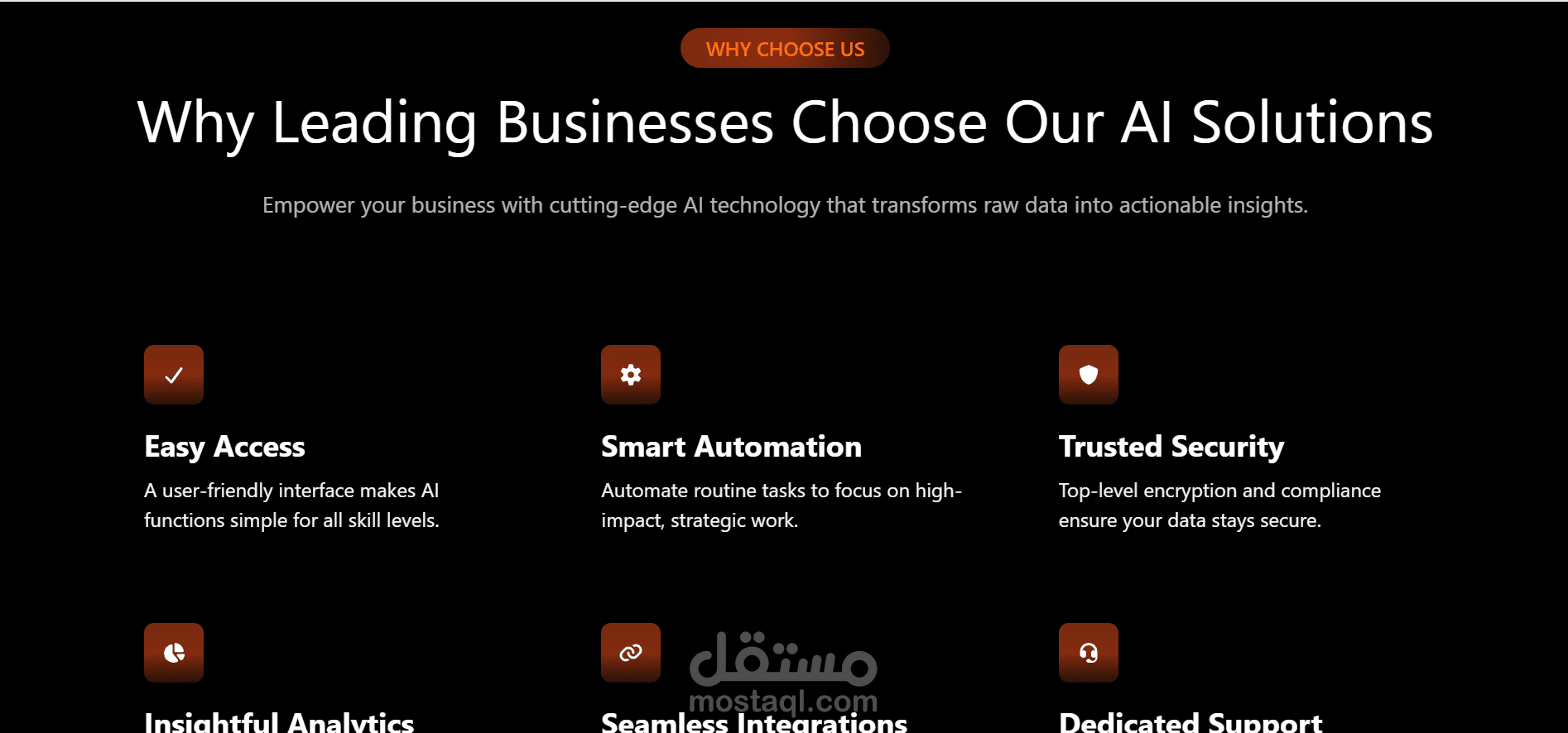 المشروع مصمم ليكون نموذجًا لواجهة موقع Agency حديثة، ويصلح للاستخدام في: