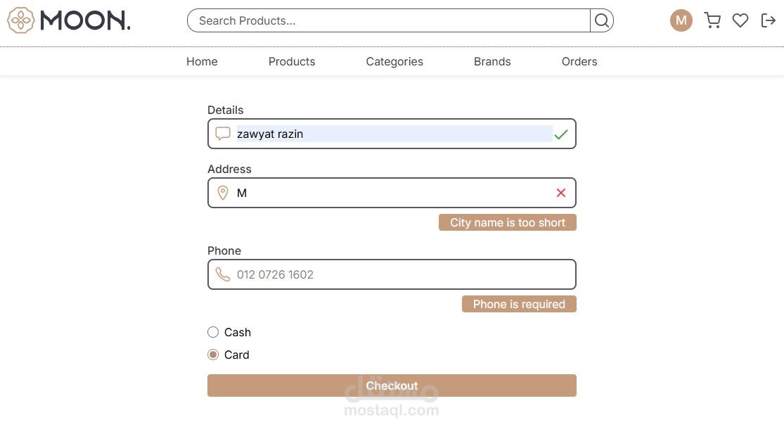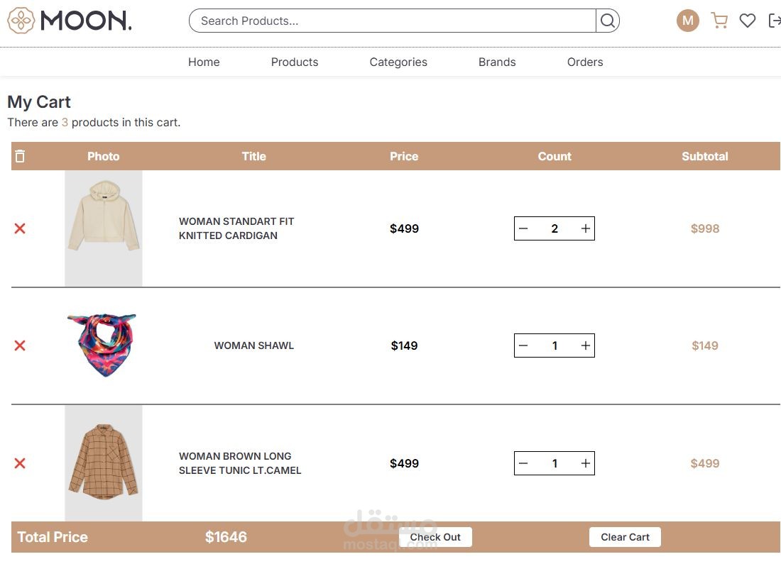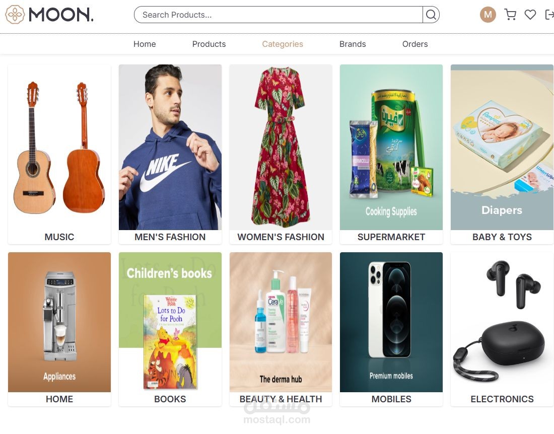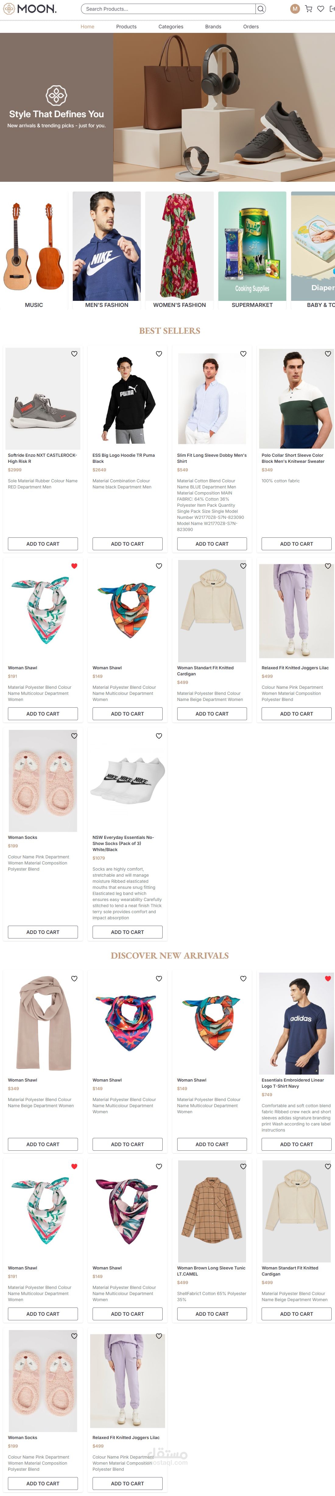 شروع Moon Store معمول بالكامل بـ React + Tailwind CSS + Redux Toolkit وبيقدم تجربة تسوق سلسة وسريعة، وكمان Responsive يعني تقدر تستخدمه على أي موبايل أو لابتوب بسهولة.