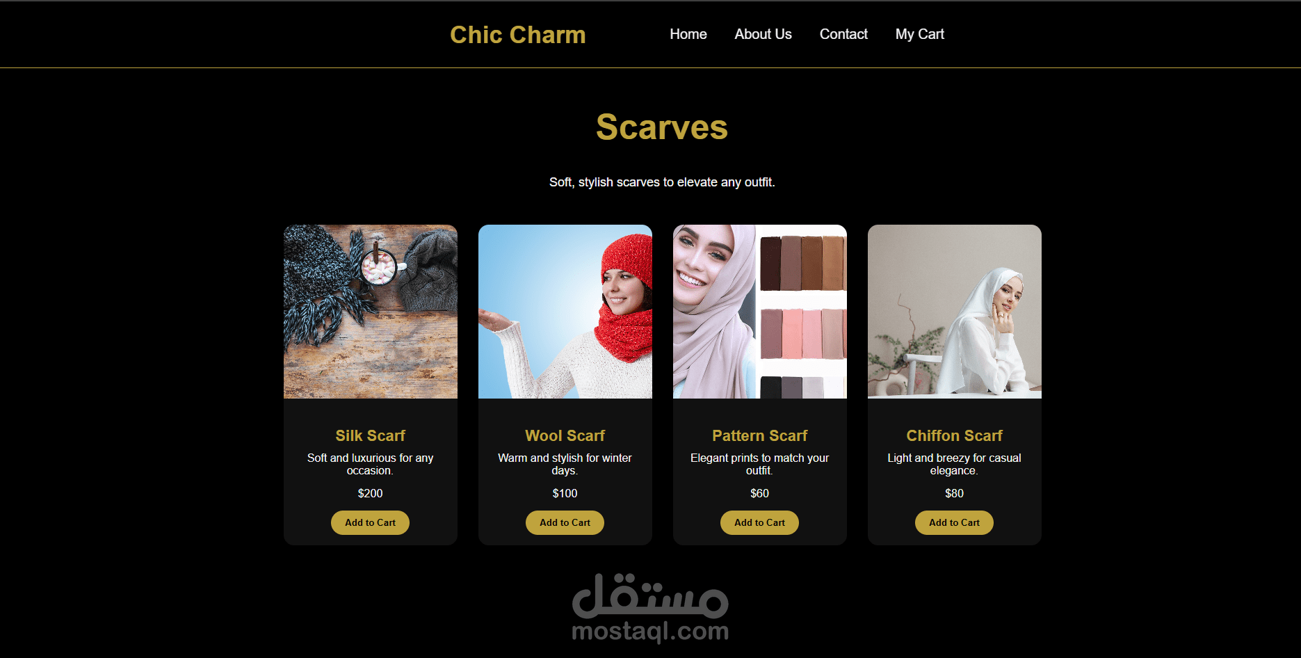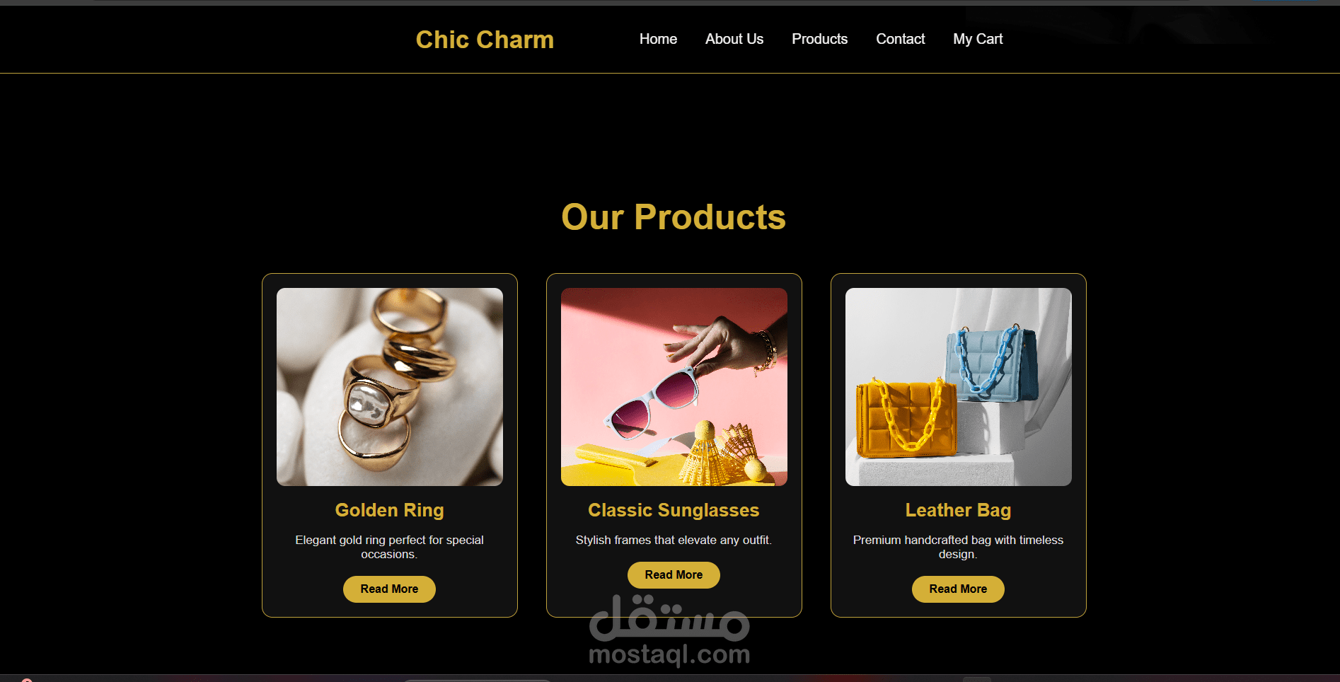 تم تنفيذ مشروع متجر إلكتروني كامل باستخدام HTML, CSS, وJavaScript، مع تصميم احترافي وجذاب يعرض المنتجات بطريقة منظمة وسهلة الاستخدام.