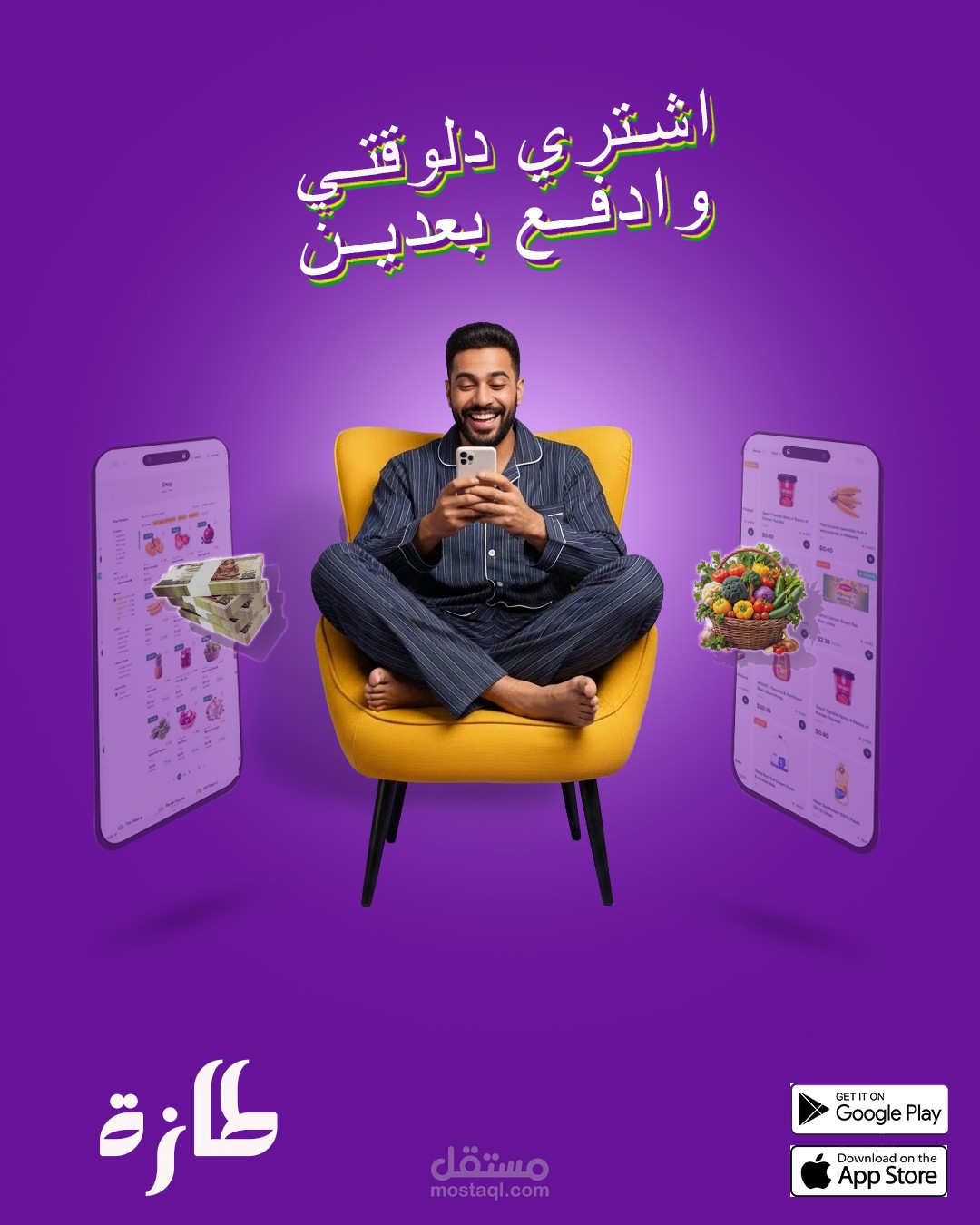 تصميم متوافق مع هوية التطبيق وألوان البراند.