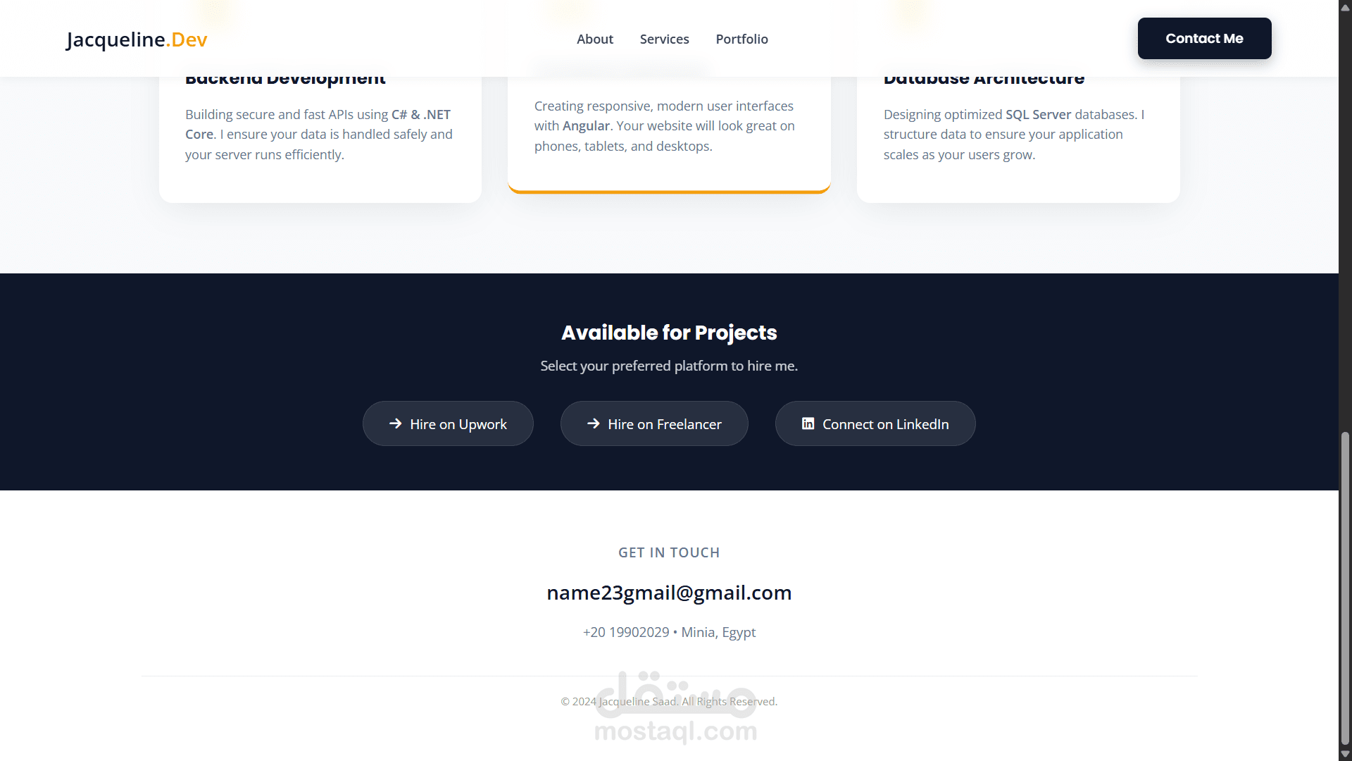 صفحة هبوط بروفايل تحتوي ع صورة شخصية و نبذة عن الشخص