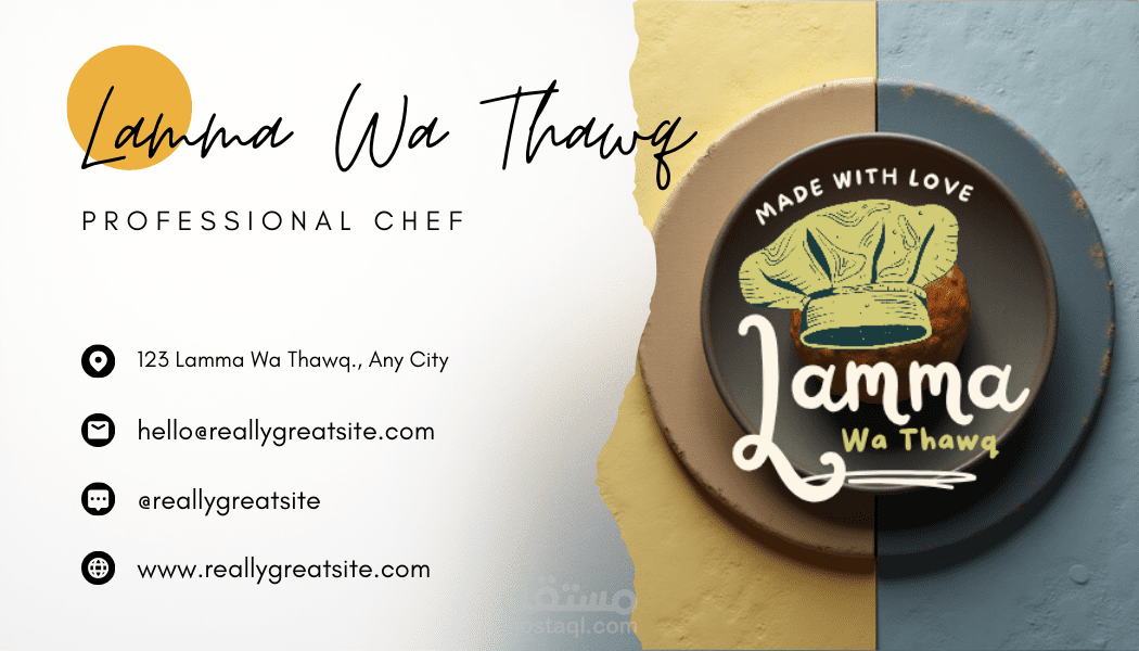 Clear Visual Identity: The design prominently features the brand name "Lamma Wa Thawq" using an elegant, distinctive script (handwritten) font.