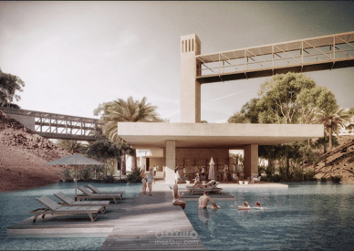 C - Lagoon, outdoor pools, and garden areas.