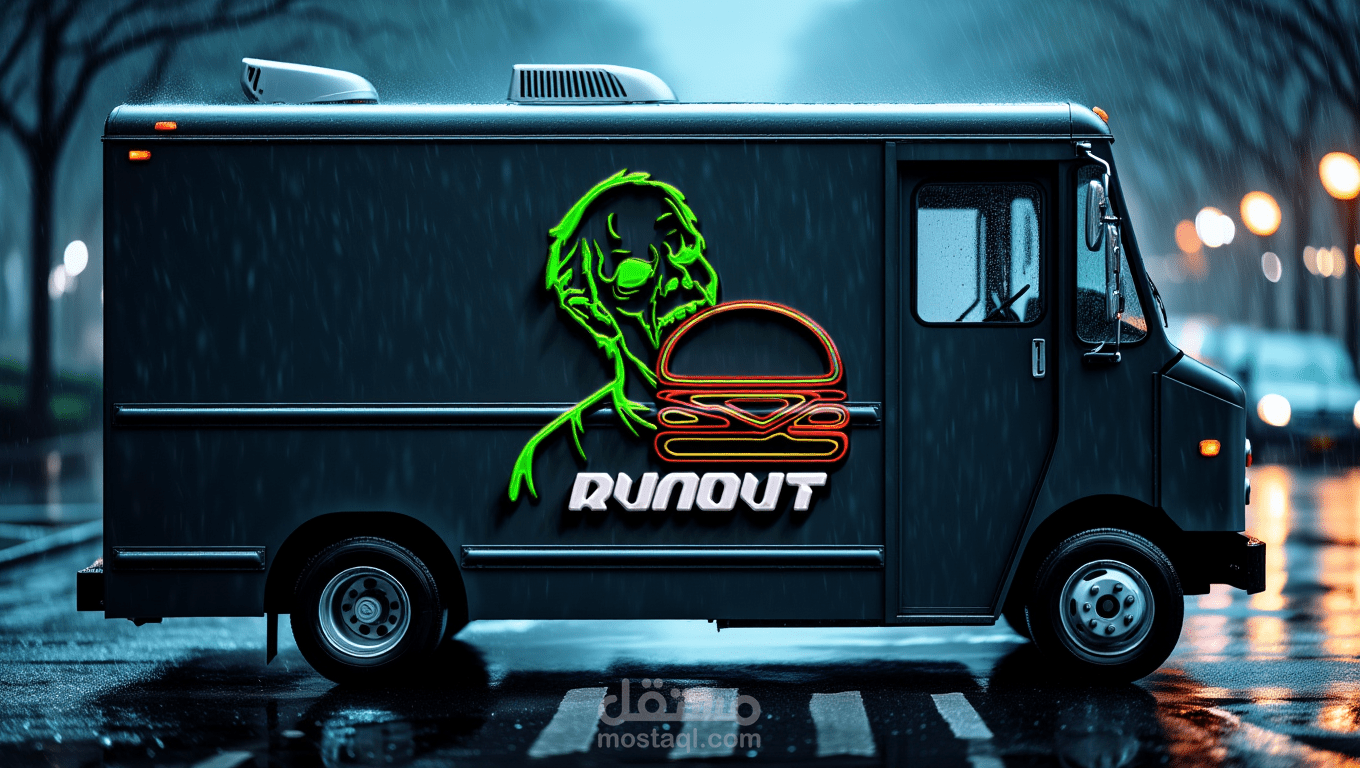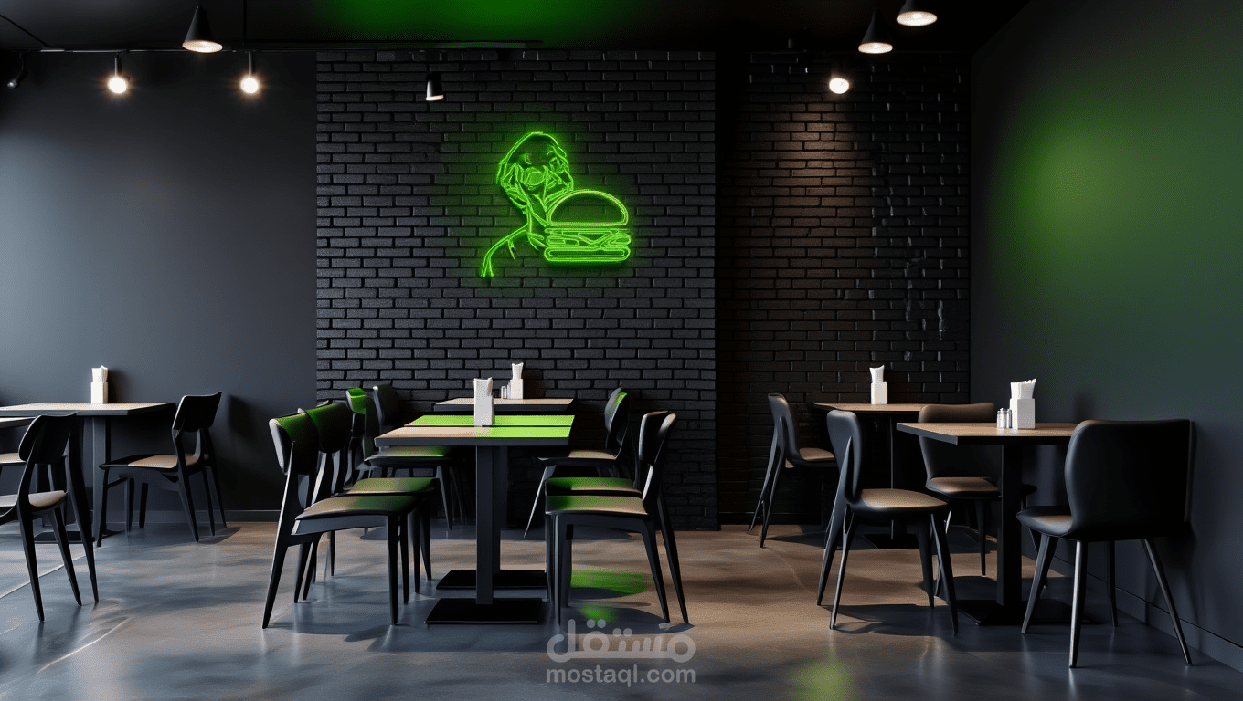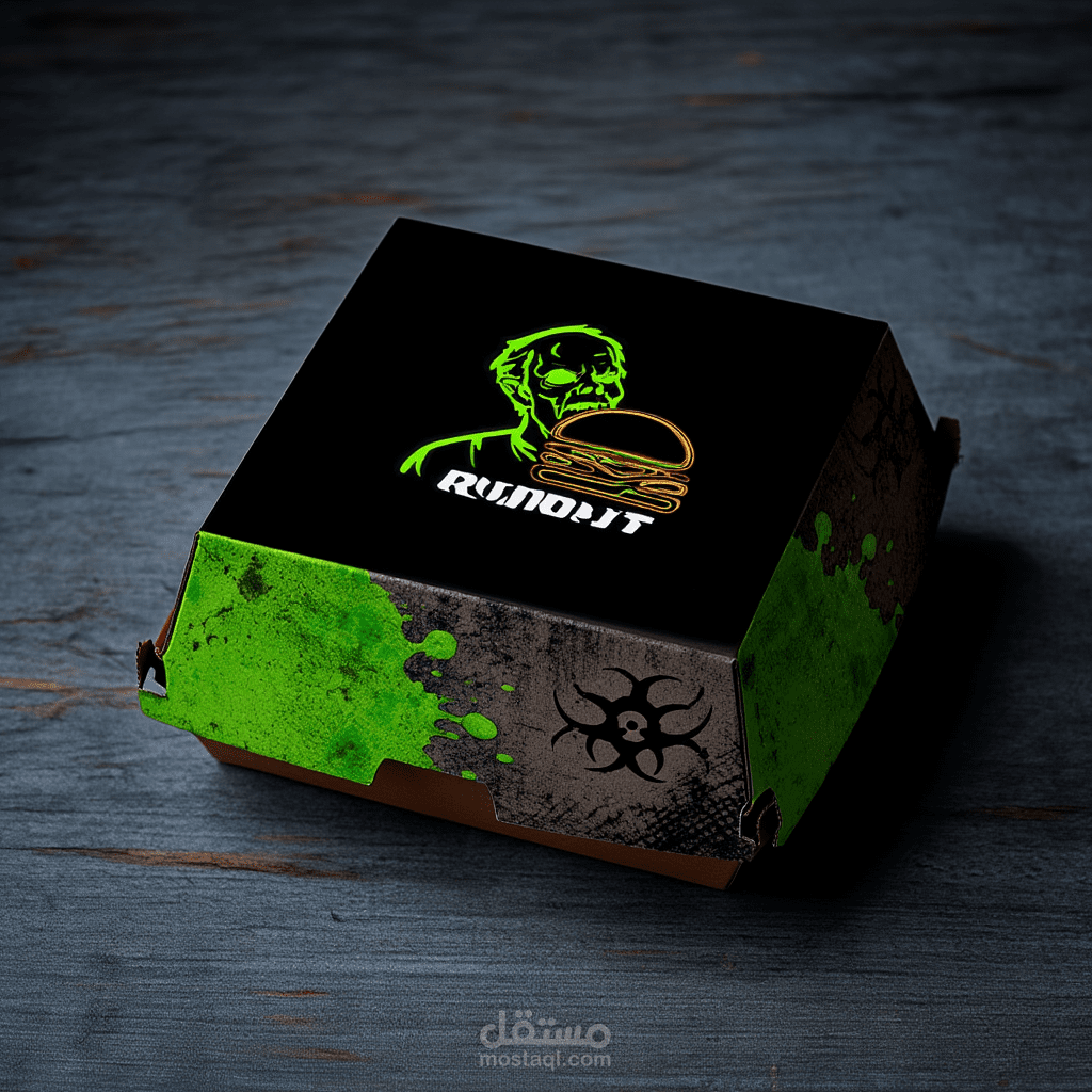 تصميم هويه لمطعم برجر مع الديكور الداخلي ب zombie vibes فريد يعطي احساس بالجوع والشعور بالغموض