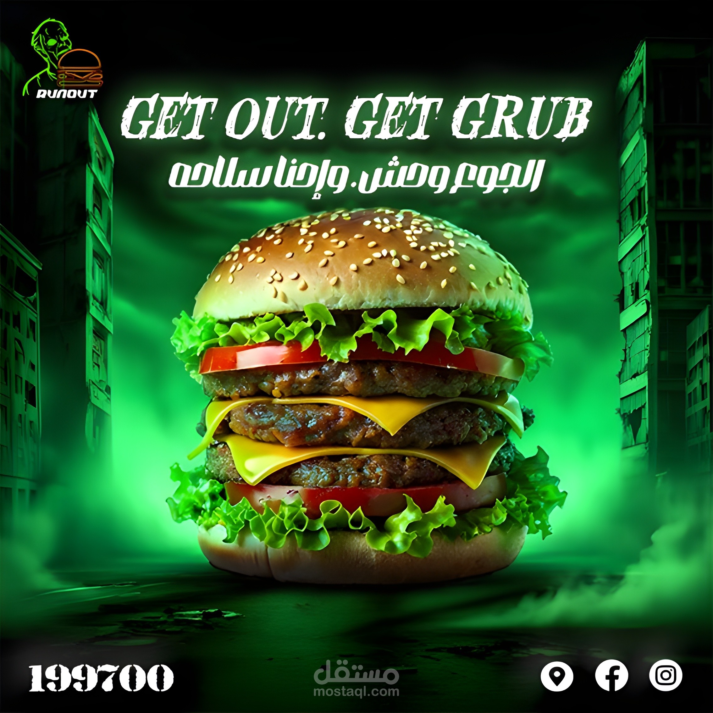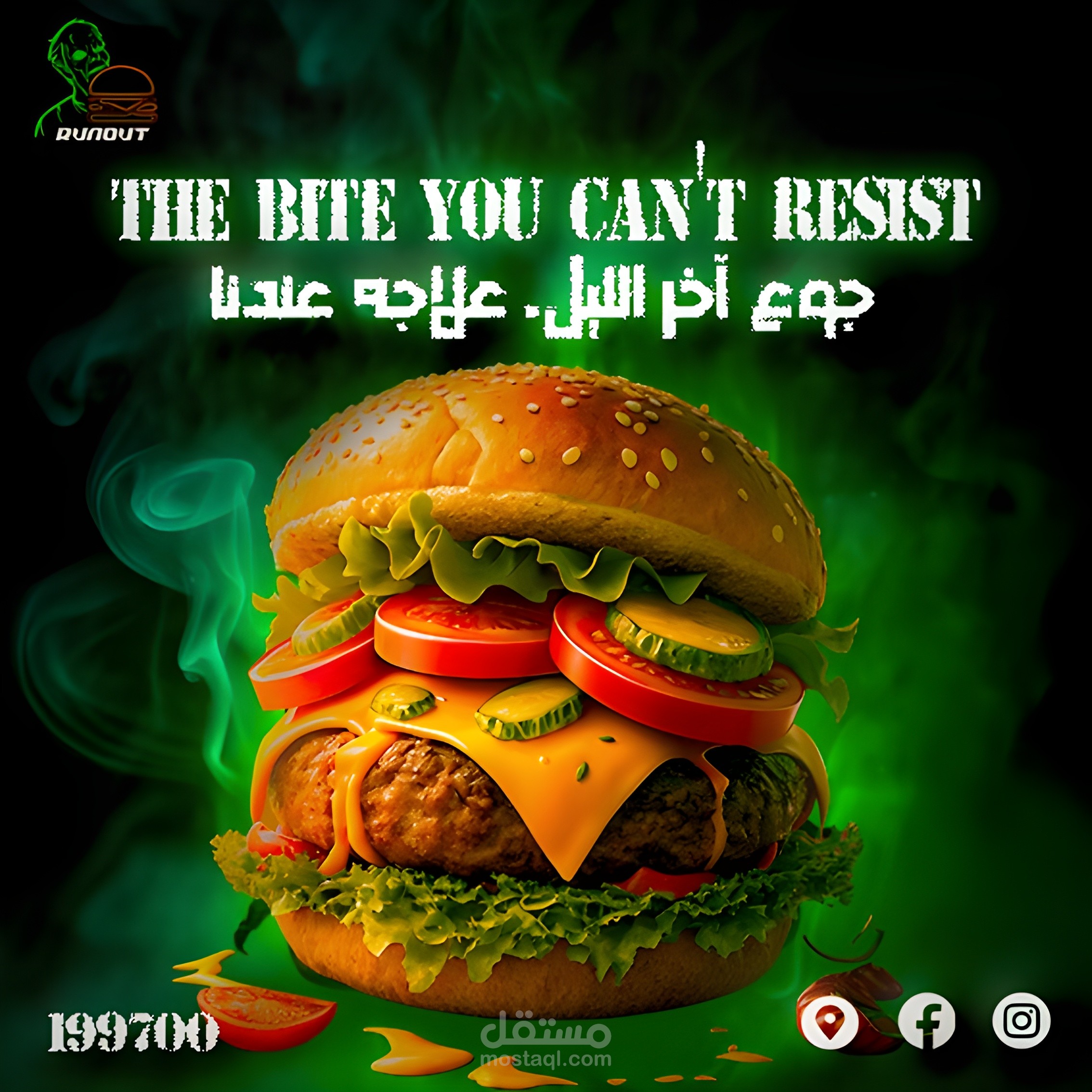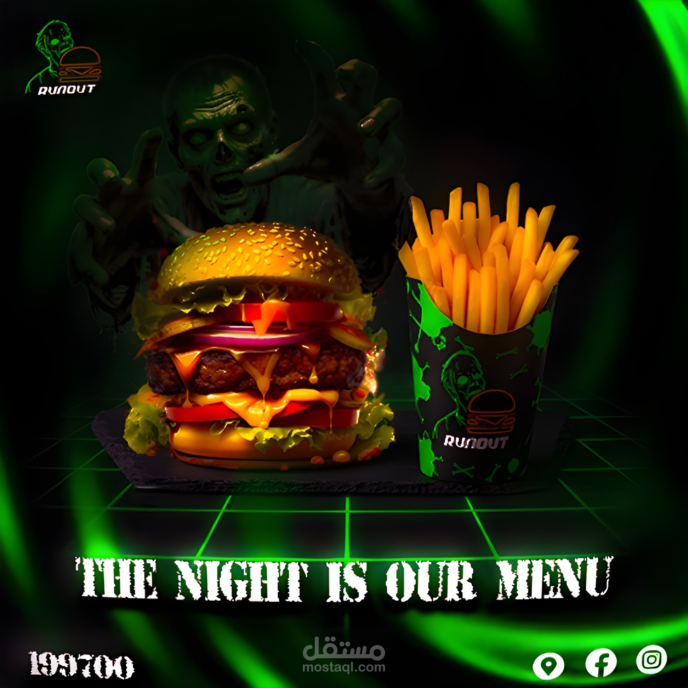 تصميم هويه لمطعم برجر مع الديكور الداخلي ب zombie vibes فريد يعطي احساس بالجوع والشعور بالغموض
