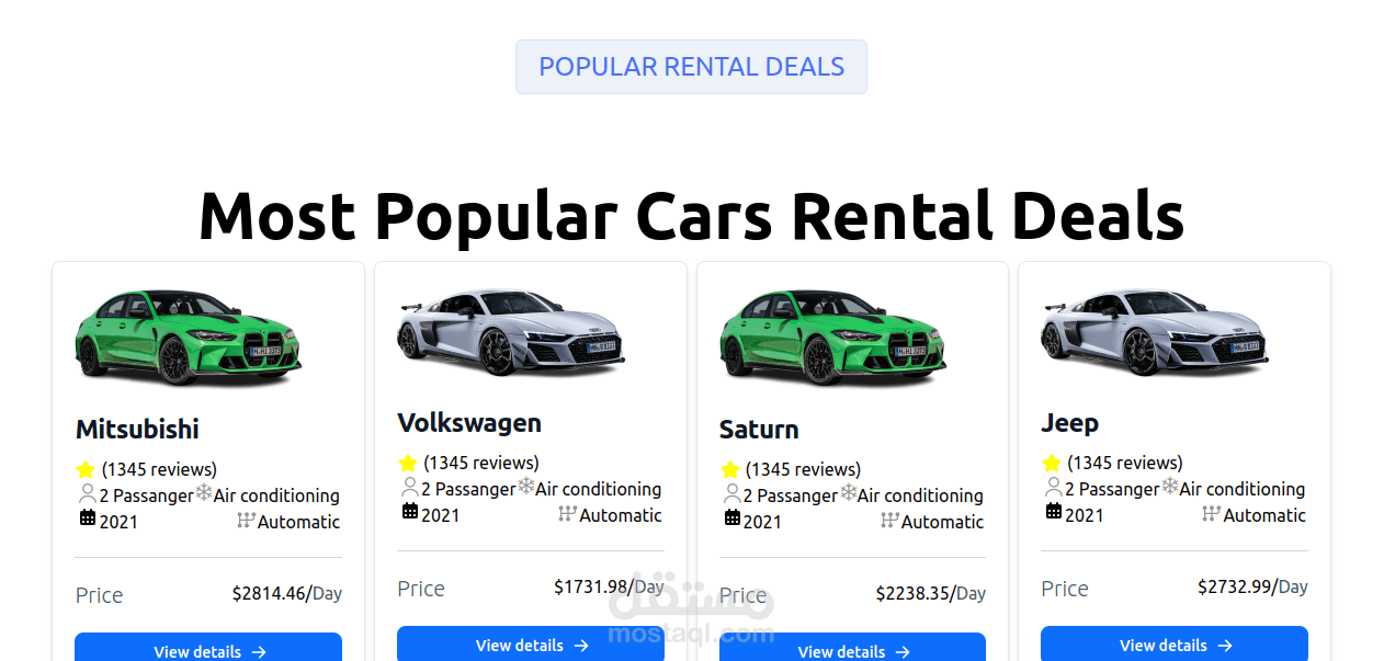 CarStore هو واجهة ويب تفاعلية لعرض السيارات بطريقة حديثة ومنظّمة. يتيح للمستخدم استعراض مجموعة من السيارات مع تفاصيلها الأساسية مثل النوع، السعر، والصورة، من خلال تصميم متجاوب يعمل بسلاسة على جميع الأجهزة. تم تطوير المشروع بواجهة أنيقة وسهلة الاستخدام، مع التركيز على عرض المحتوى بشكل واضح وجذاب.