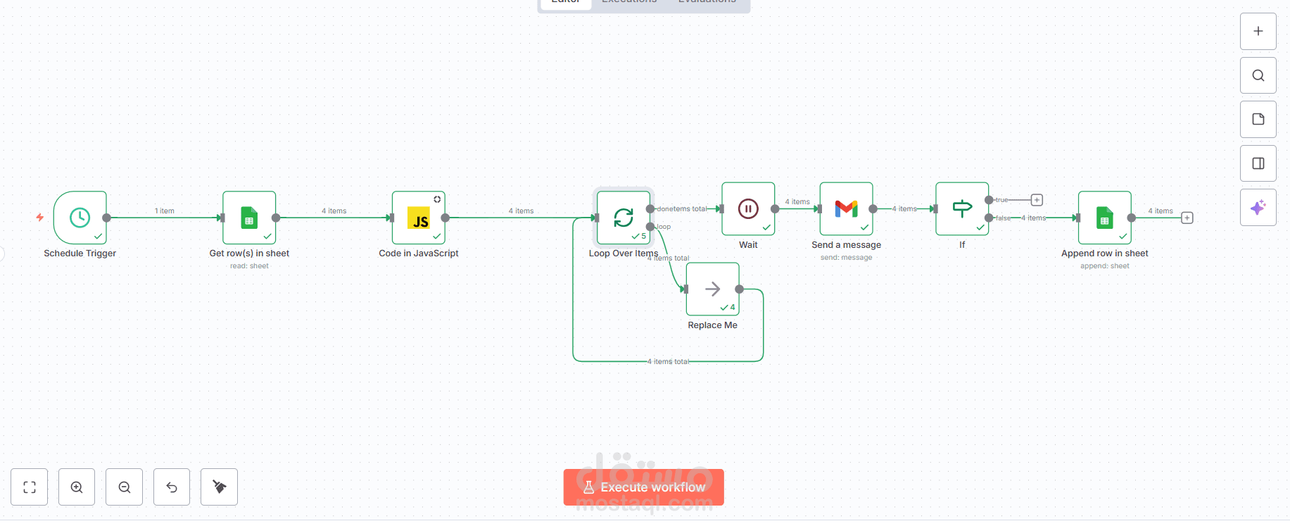 بيعدّي على كل صف لوحده (Loop Over Items).