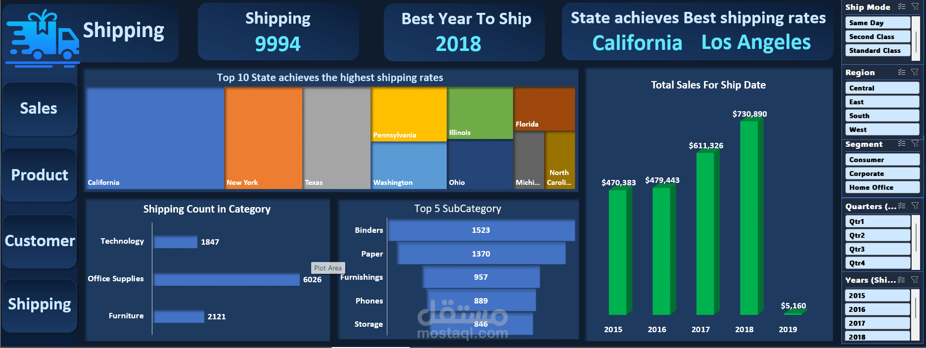 أفضل ولاية في الشحن: California