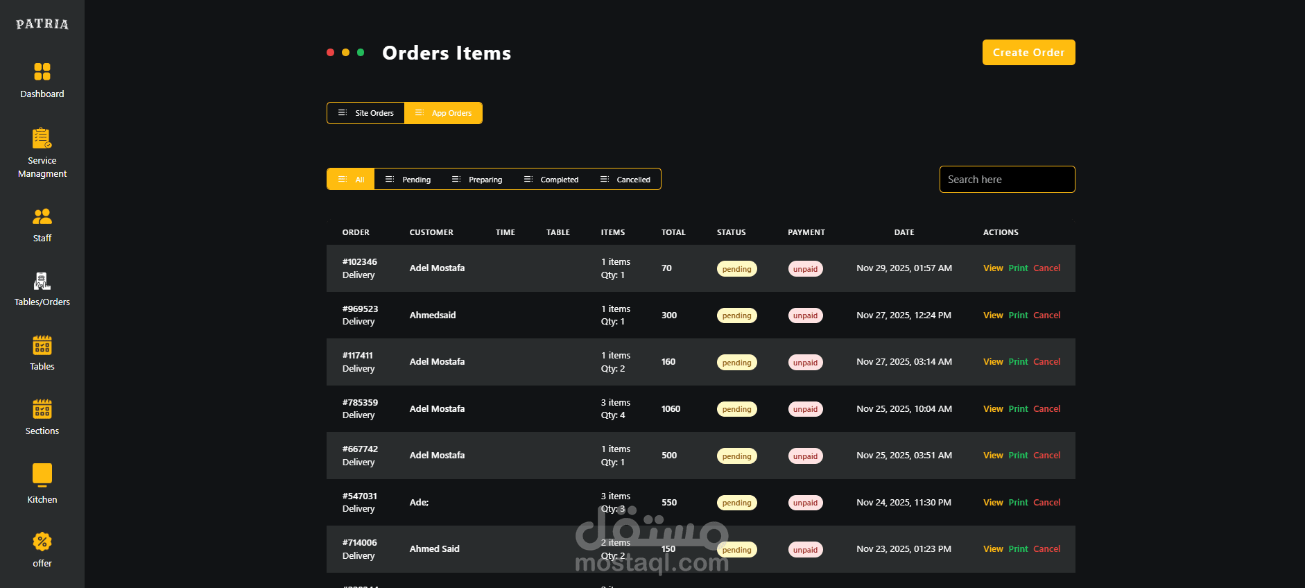 مشروع Patria هو نظام متكامل لإدارة المطاعم، يتكوّن من لوحة تحكم للإدارة (Dashboard) وواجهة مخصّصة للزبائن. يهدف النظام لتسهيل إدارة المنيو، العروض، الطلبات، والطاولات بطريقة مرنة وسهلة.