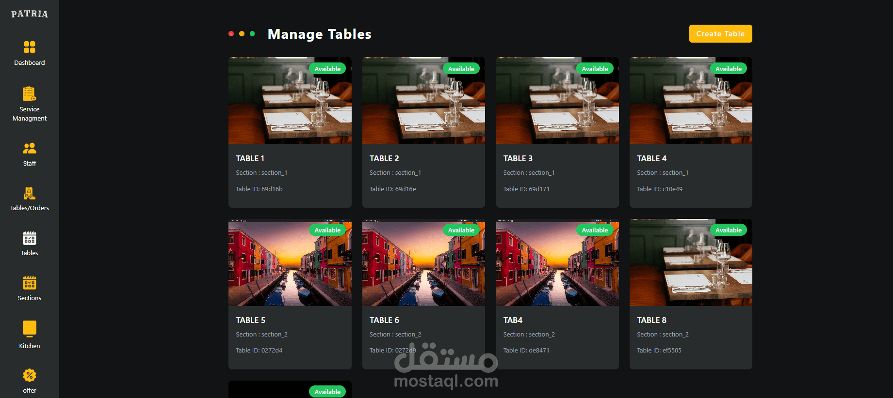 إدارة الطاولات (Table Management)