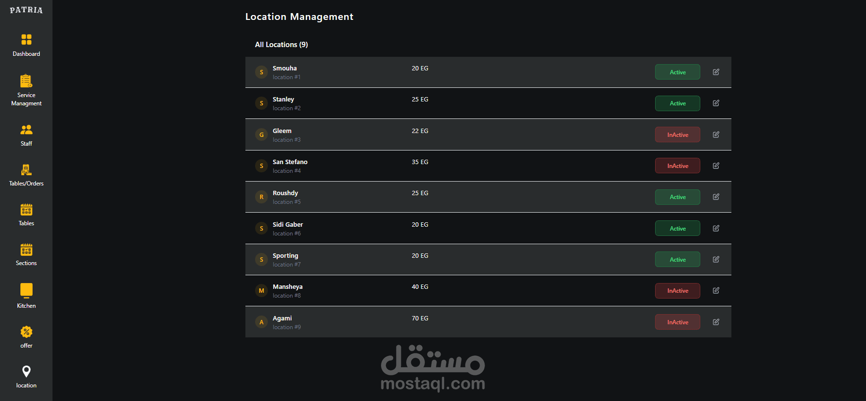 إضافة فروع المطعم وربط كل فرع بمناطق توصيل معينة، لتنظيم خدمة الدليفري ومعرفة المناطق المغطّاة لكل فرع.