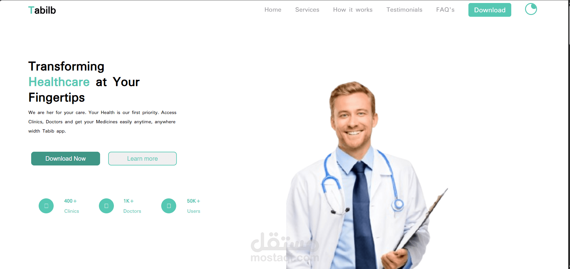 Tabib هو موقع سهل الاستخدام يتيح حجز المواعيد الطبية بسهولة وكفاءة. يساعد المرضى على الوصول إلى الأطباء وحجز المواعيد بسرعة، كما يوفّر للعيادات لوحة إدارة قوية. يتميّز الموقع بتصميم متجاوب بالكامل يعمل بسلاسة على جميع الأجهزة.