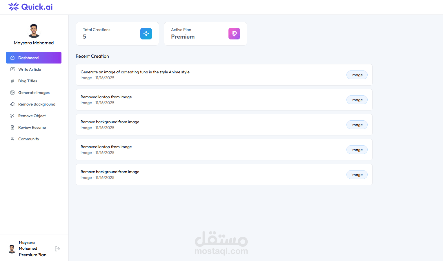 Built a full-stack SaaS platform using (PERN stack) with Clerk authentication and subscription management. Integrated Google Gemini API for text generation (articles, blog titles, resume reviews), ClipDrop API for AI image