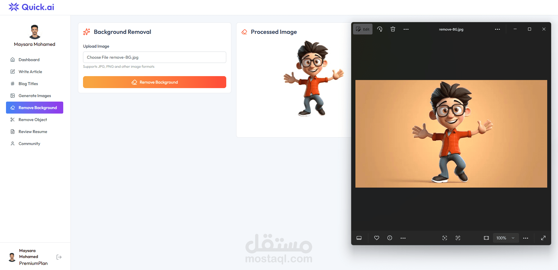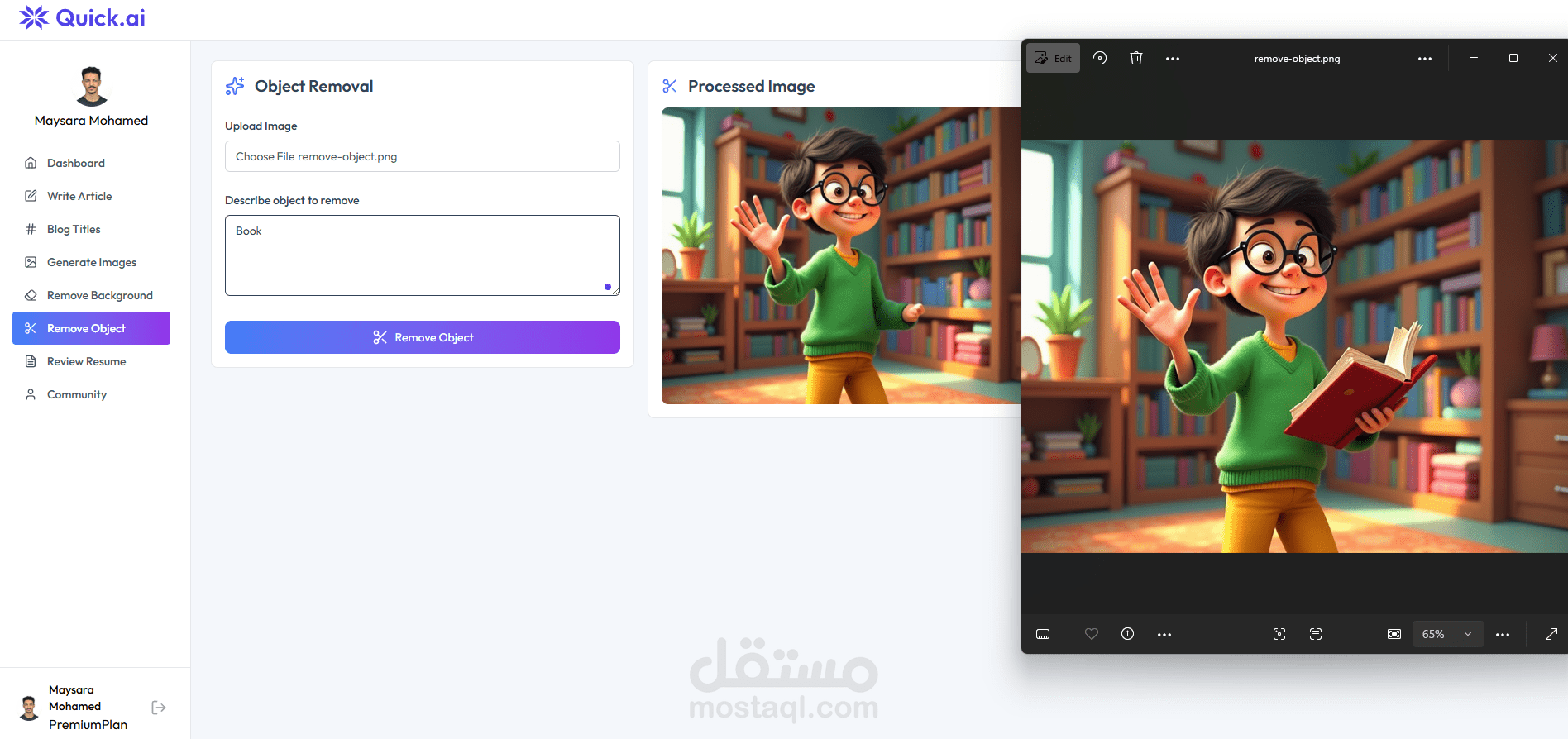 generation, and Cloudinary API for advanced image manipulation (background/object removal), implementing