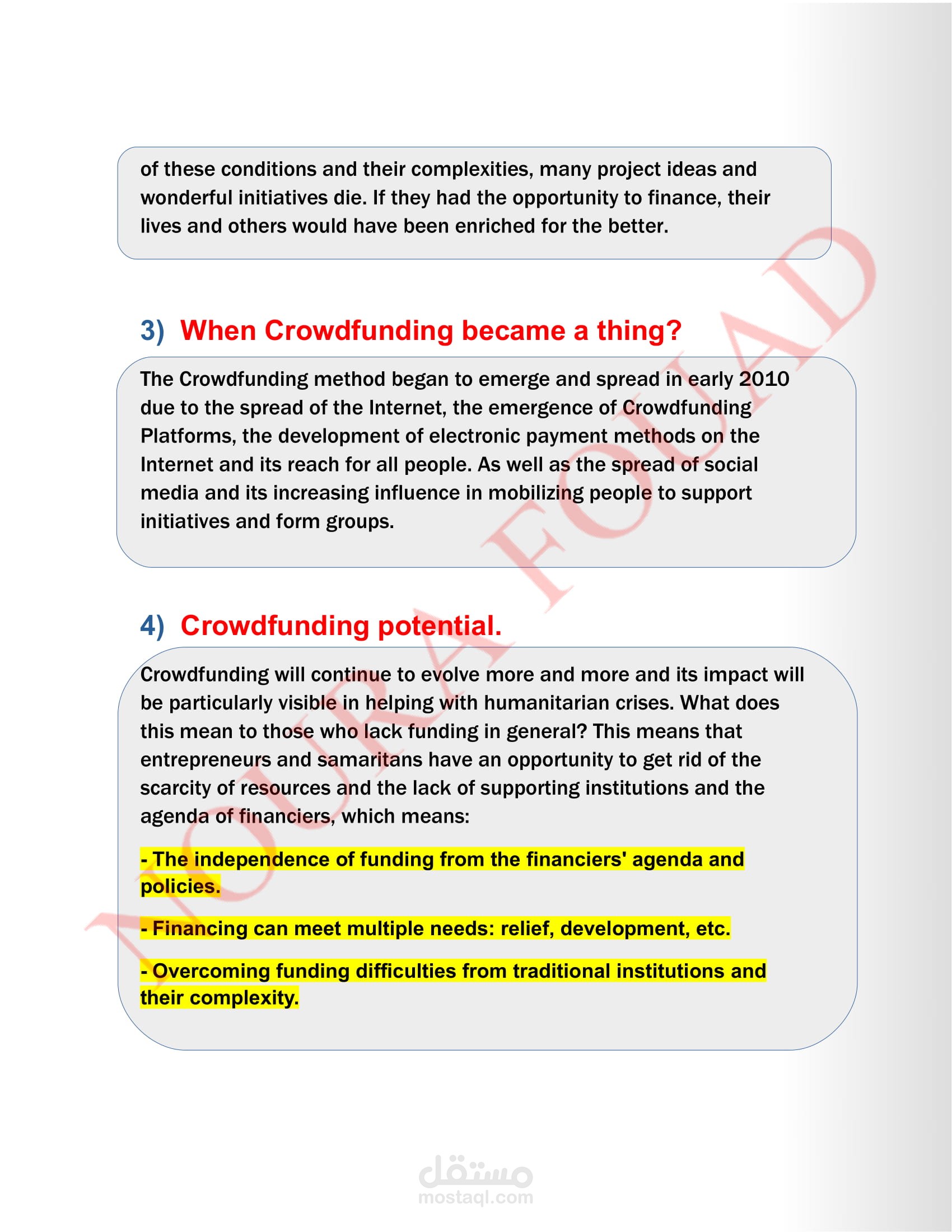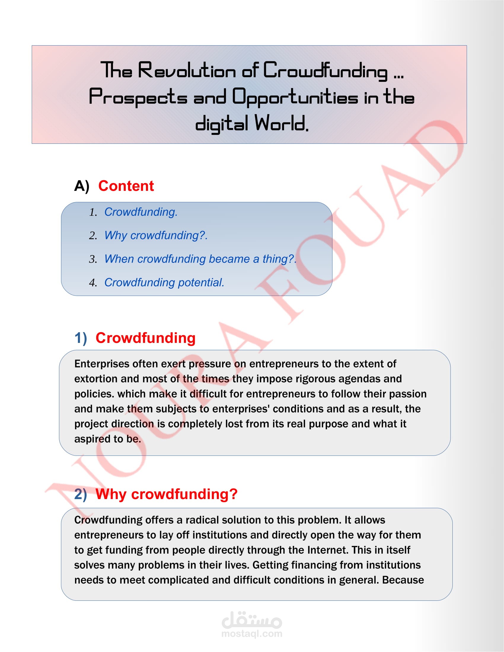 هذا مقال قصير باللغة الانجليزية عن ال Crowdfunding او التمويل الجماعى قمت بكتابته خصيصا لمحبى المقالات القصيرة والمعلومات المختصرة بطريقة سليمة لا تضر المحتوى.