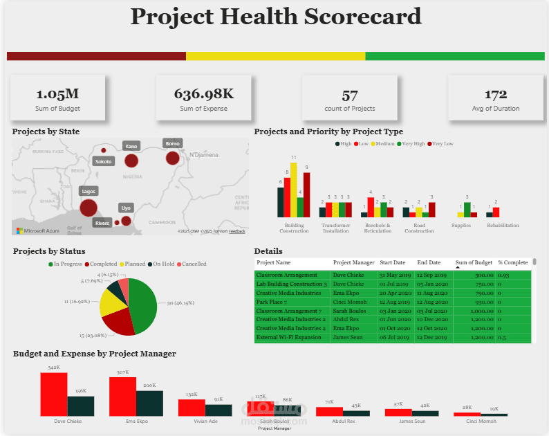 هذا المشروع يقدم تقريرًا متكاملًا لإدارة المشروعات بالاعتماد على ملف بيانات يوضح المهام، المواعيد، نسب الإنجاز، حالة كل مشروع، والمسؤولين عن التنفيذ.