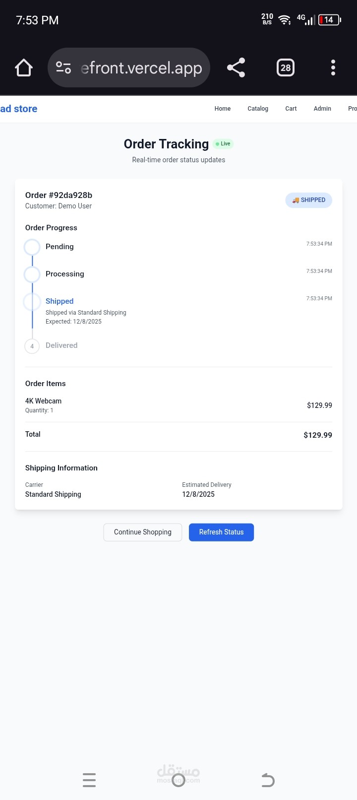 تحديثات لحظية (Real-time): استخدام تقنية (SSE) لتتبع حالة الطلبات والمخزون بشكل مباشر دون تحديث الصفحة.