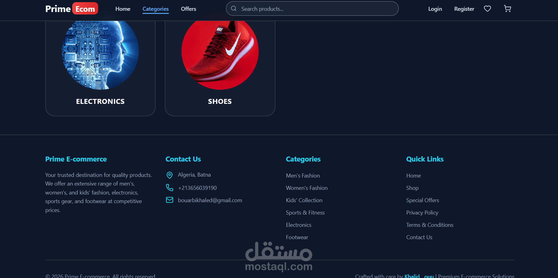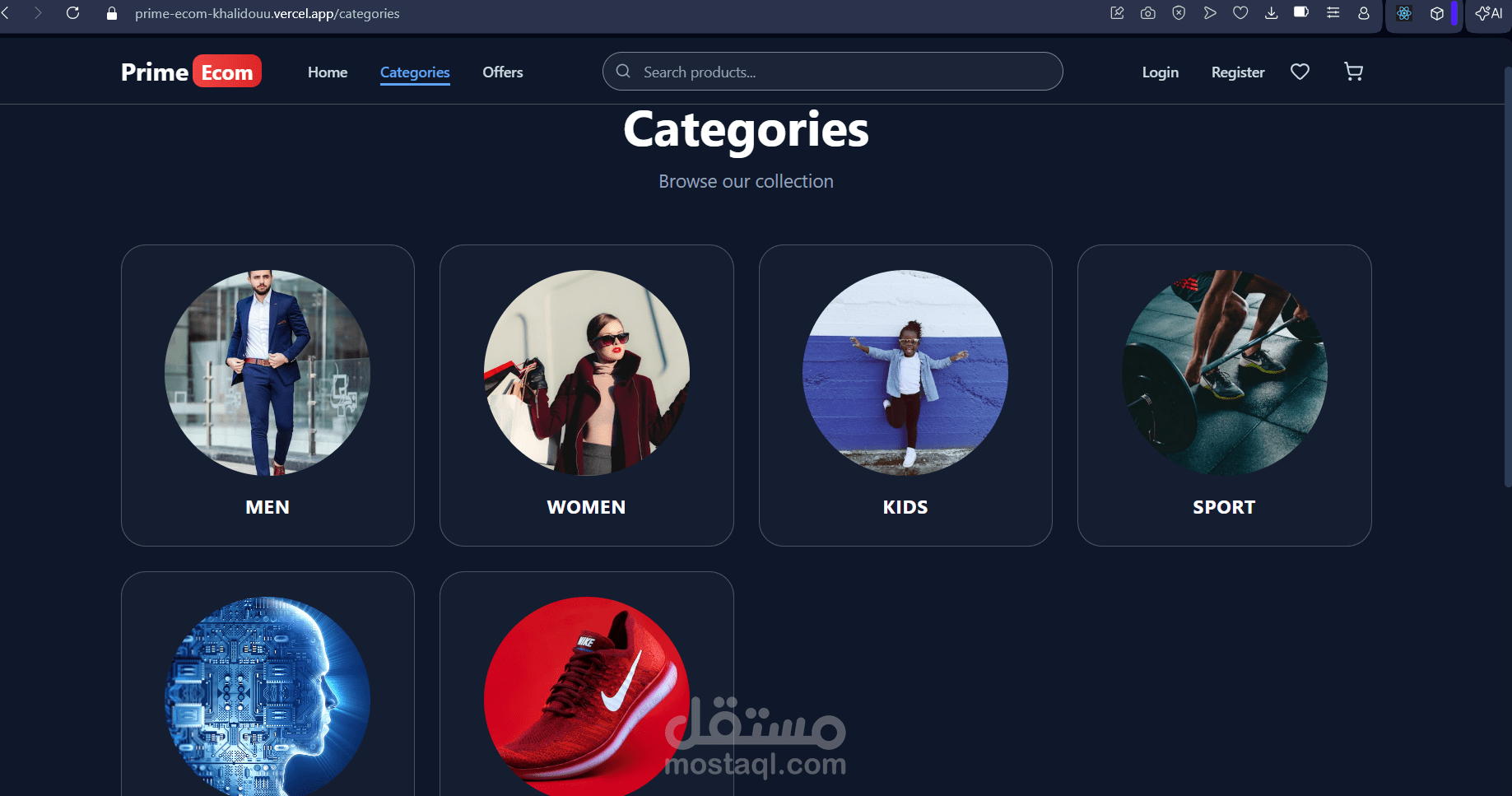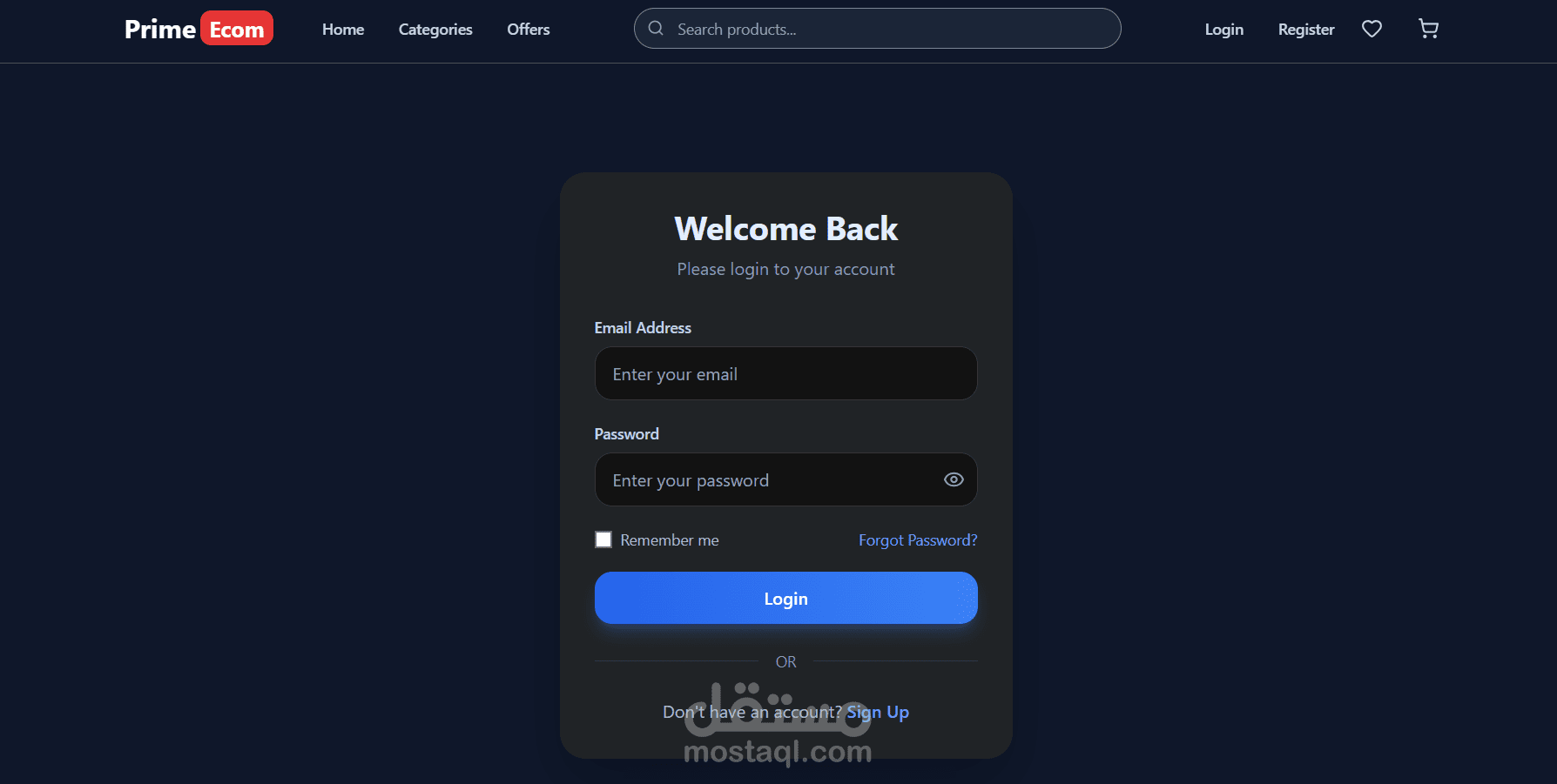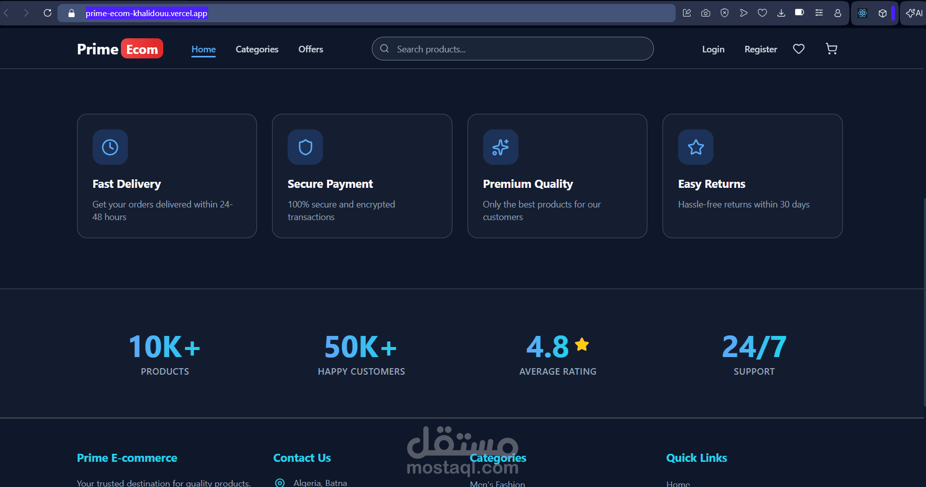 تطبيق للتجارة الإلكترونية مبني باستخدام React و TypeScript و TailwindCSS - يتميز بتصفح المنتجات والبحث والمصادقة وسلة التسوق وقائمة الأمنيات والخصومات.