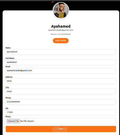 تطوير صفحة الـ Profile التي تتيح للمستخدم عرض وتعديل بياناته الشخصية.