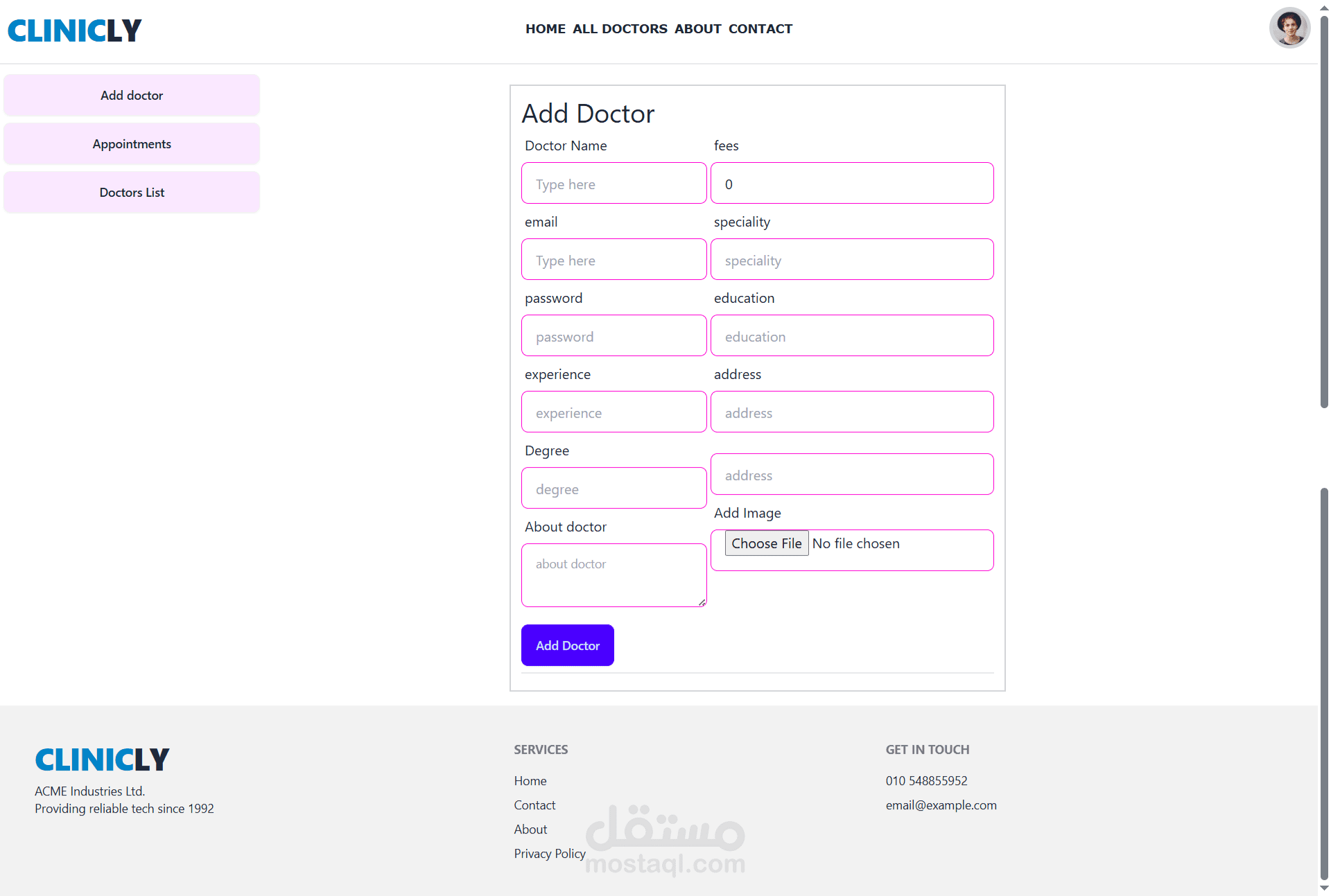 البناء والتصميم: تم بناء بوابة إدارة شاملة باستخدام React.js و DaisyUI، وتتميز بلوحات تحكم (Dashboards) تعتمد على الأدوار المختلفة.