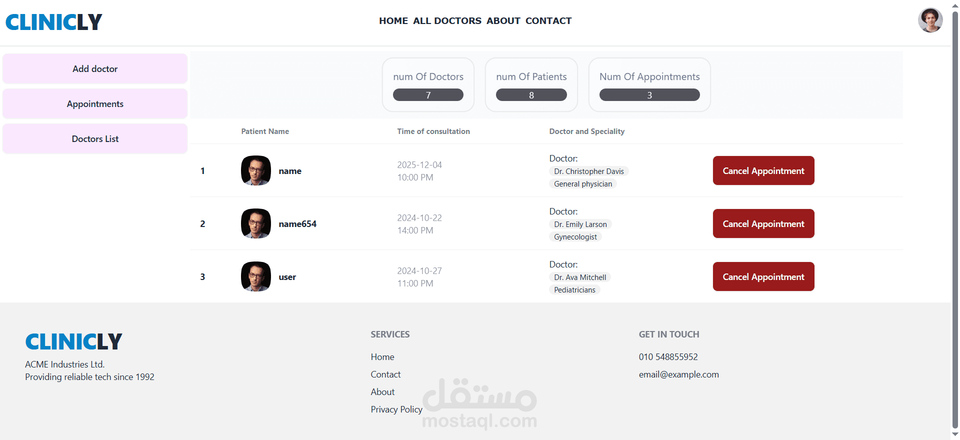 لوحات تحكم مُخصصة للمرضى، تتيح لهم حجز وإلغاء المواعيد.