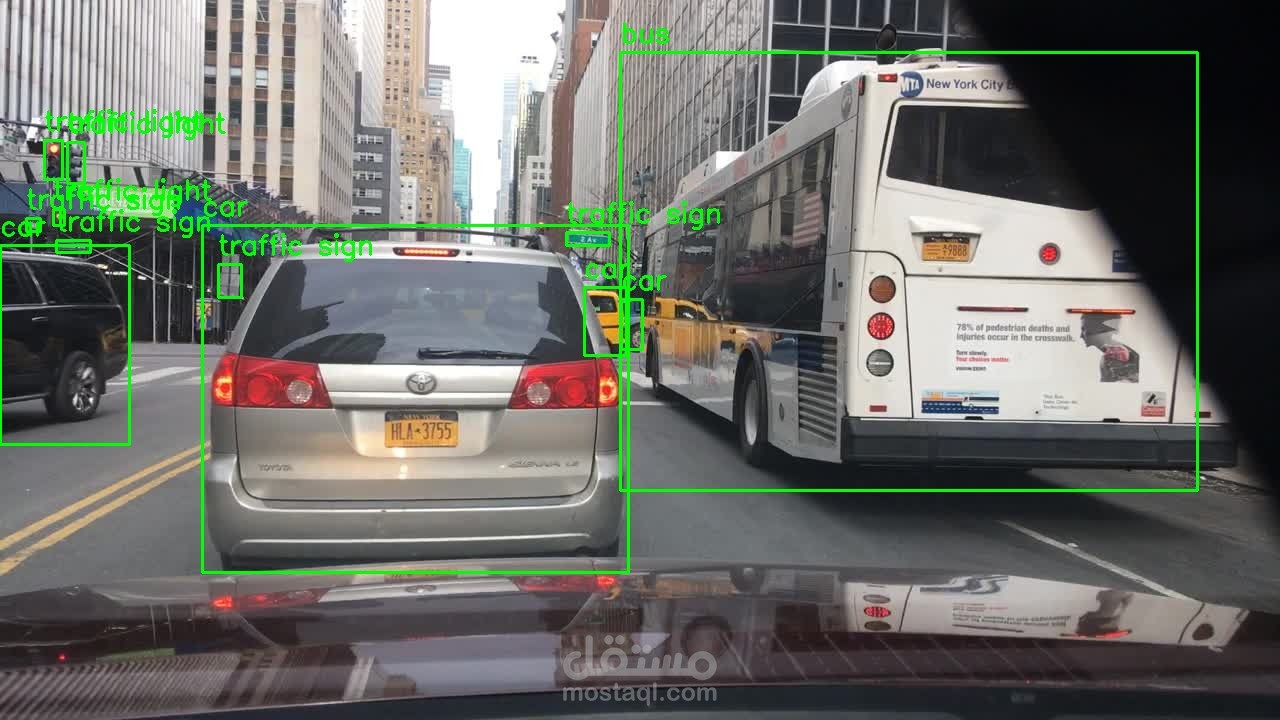 إعادة تدريب النموذج (Fine-tuning) للتعرف على فئات السيارات الهامة: المشاة، المركبات، إشارات المرور، والعوائق.