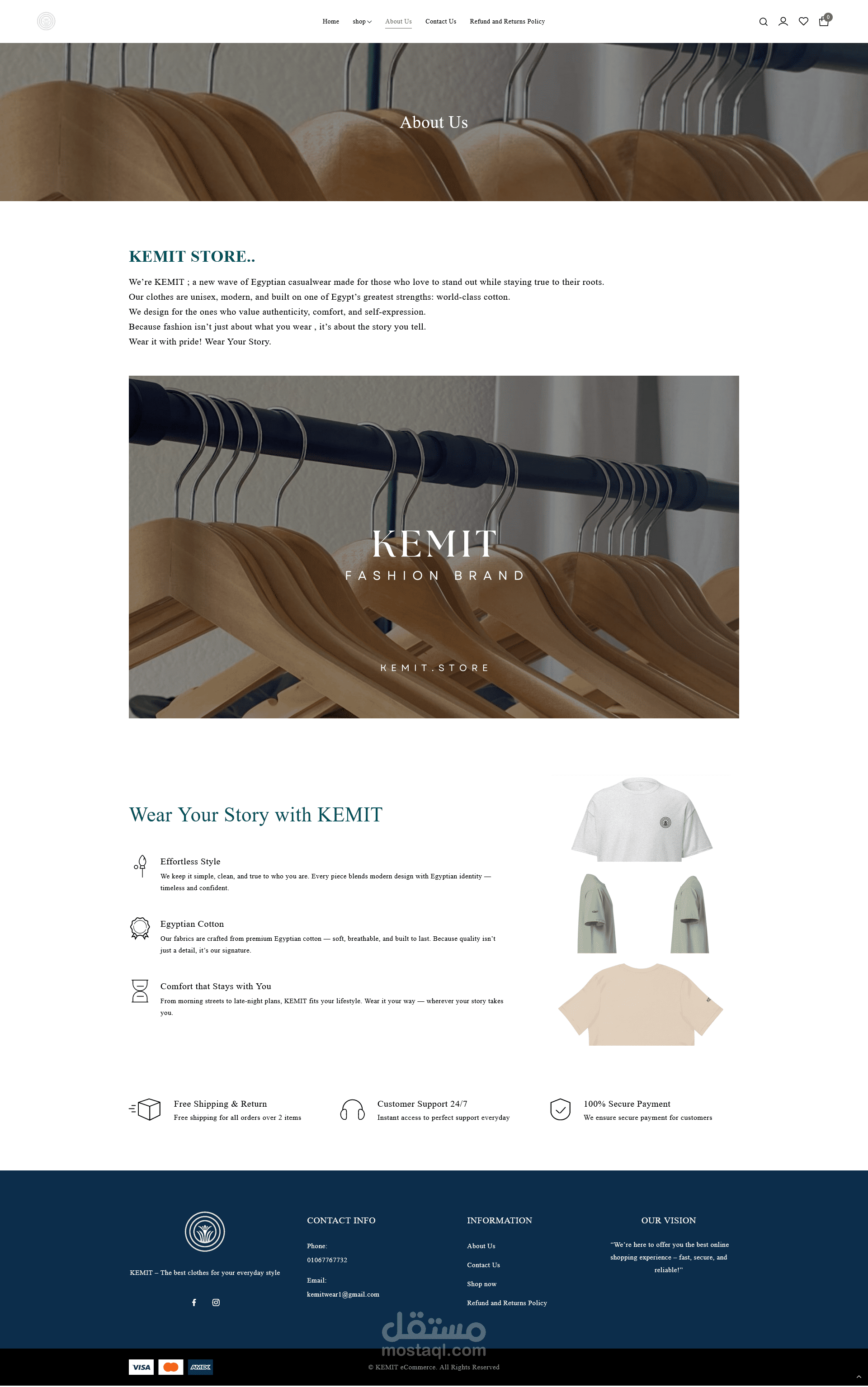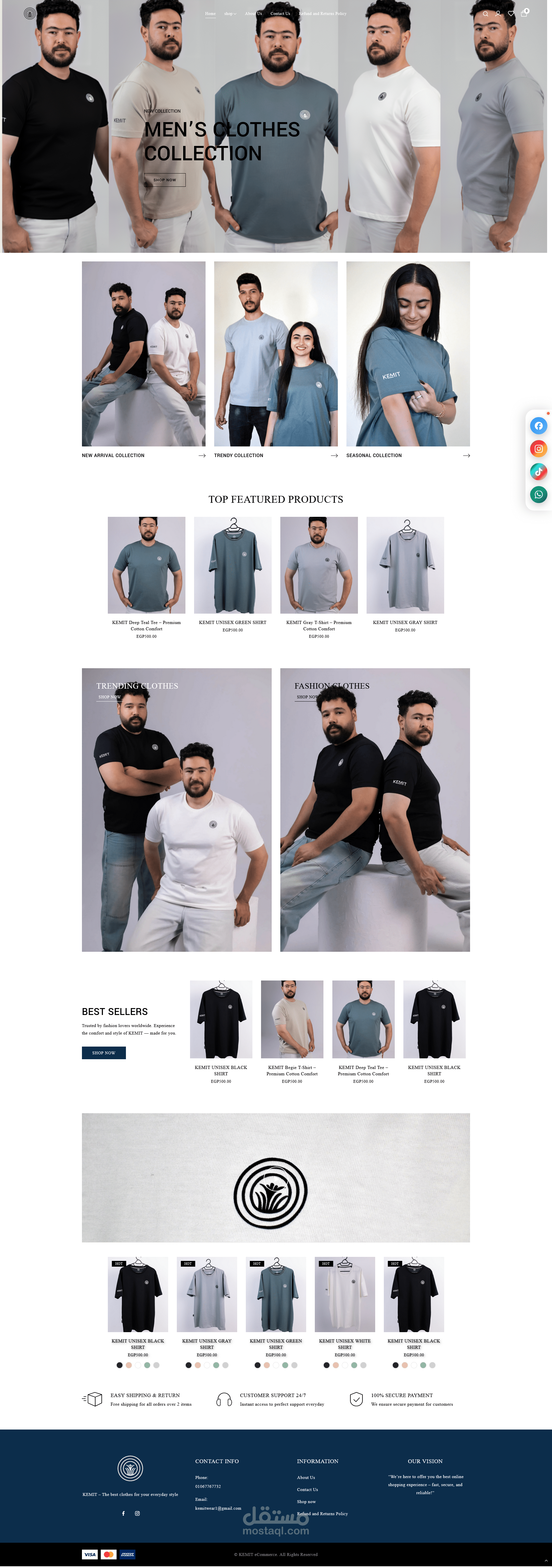 Kemit.store هو متجر إلكتروني للملابس قمت ببنائه بالكامل باستخدام WordPress وWooCommerce بهدف إنشاء براند أزياء عصري يقدم تجربة تسوّق احترافية للعملاء.