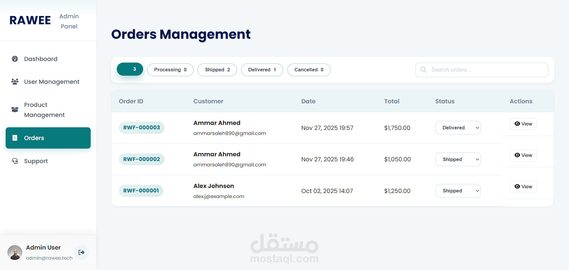 عرض الطلبات والإحصائيات والمتابعة الفورية للاستفسارات.