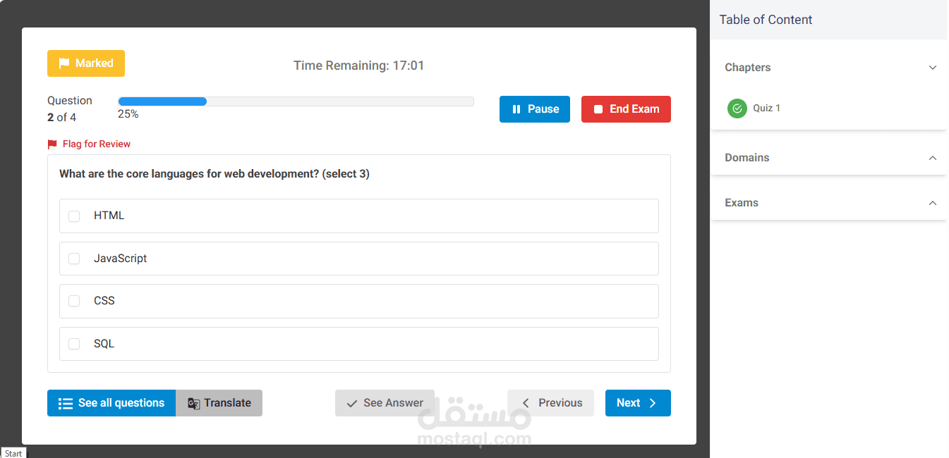 ✅ نظام امتحانات متقدم (اختيار متعدد، سحب وإفلات، نعم/لا، وغيرها).