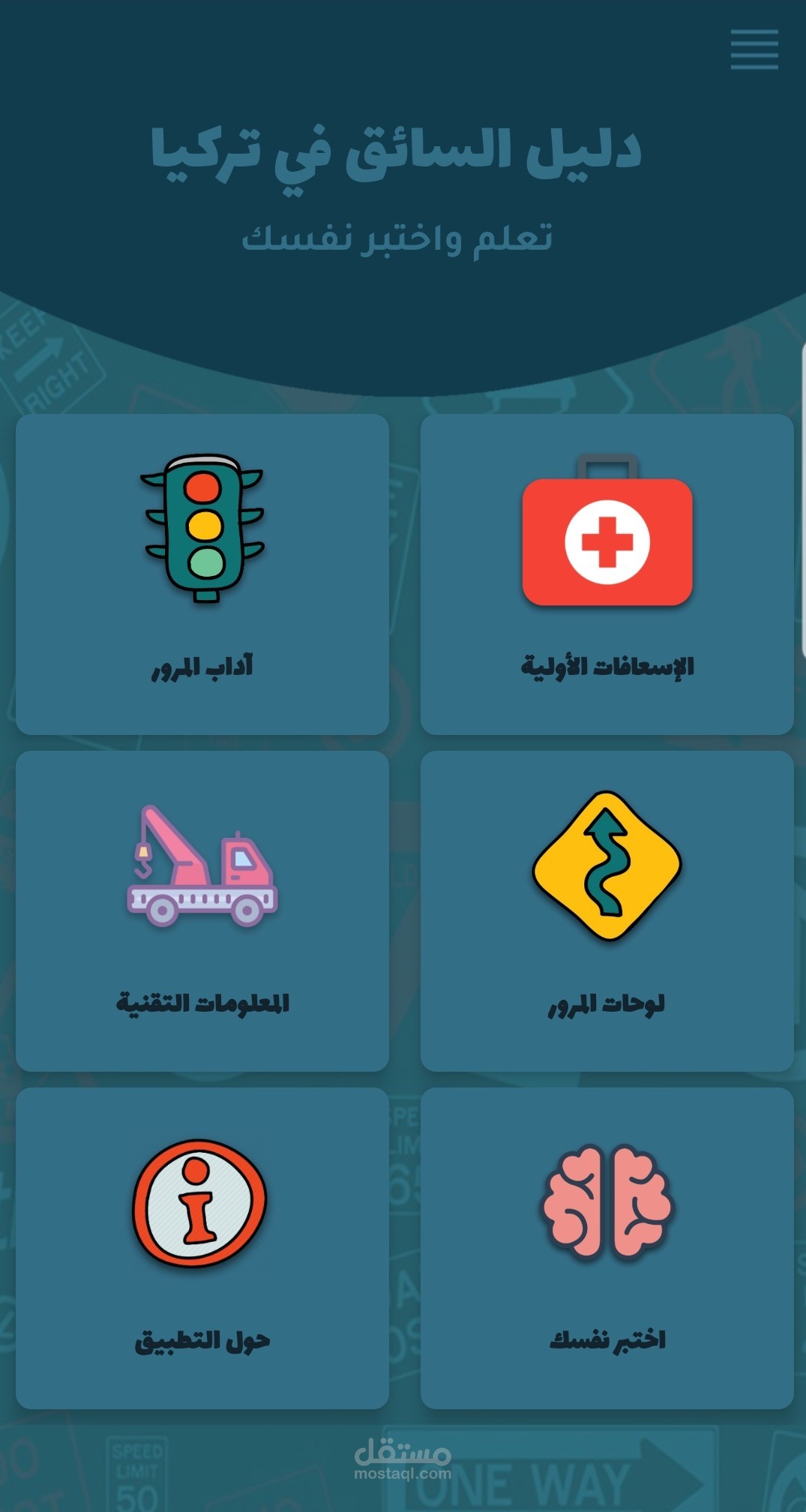 يساعدك هذا التطبيق على تعلم مبادئ القيادة ويمنحك الفرصة لاختبار نفسك من خلال الخضوع إما لإختبارات متنوعة ذو أنماط مختلفة وإما لأسئلة الامتحان النظري للسنوات السابقة
