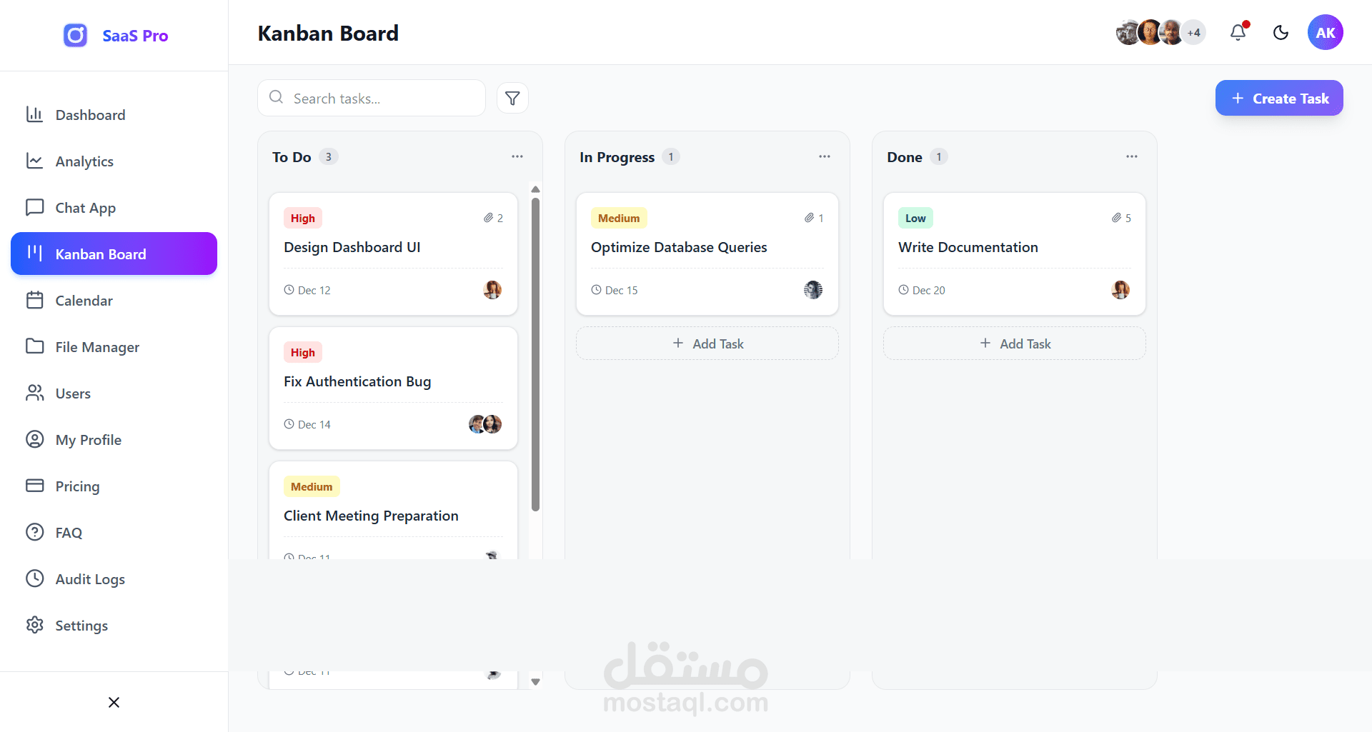 * إدارة المهام (Kanban Board) بنظام السحب والإفلات.