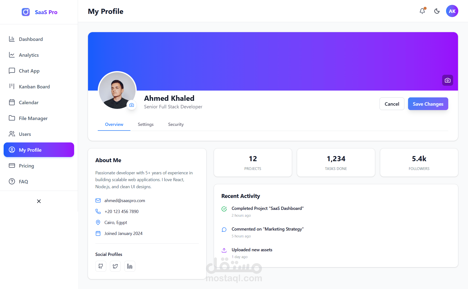 قمت بتصميم وتطوير نظام لوحة تحكم (Admin Dashboard) متكاملة وعصرية من الصفر، موجهة لخدمة مشاريع الـ SaaS وإدارة الشركات. المشروع مبني بأحدث التقنيات لضمان السرعة، الأداء العالي، وقابلية التوسع.