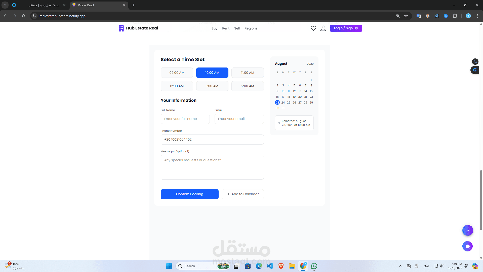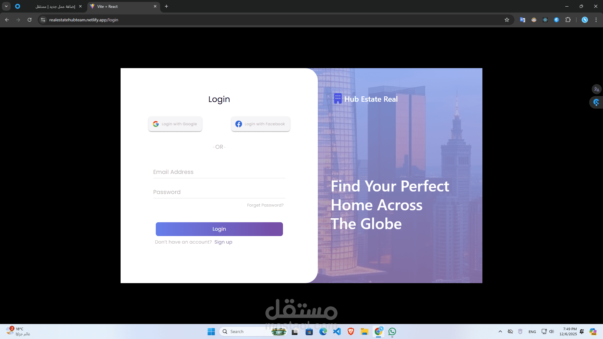 استخدمت React.js، TanStack Query، Zustand، Shadcn UI وMUI لضمان أداء ممتاز وتجربة سلسة على جميع الأجهزة، مع نظام تسجيل دخول آمن يدعم Google وFacebook.
