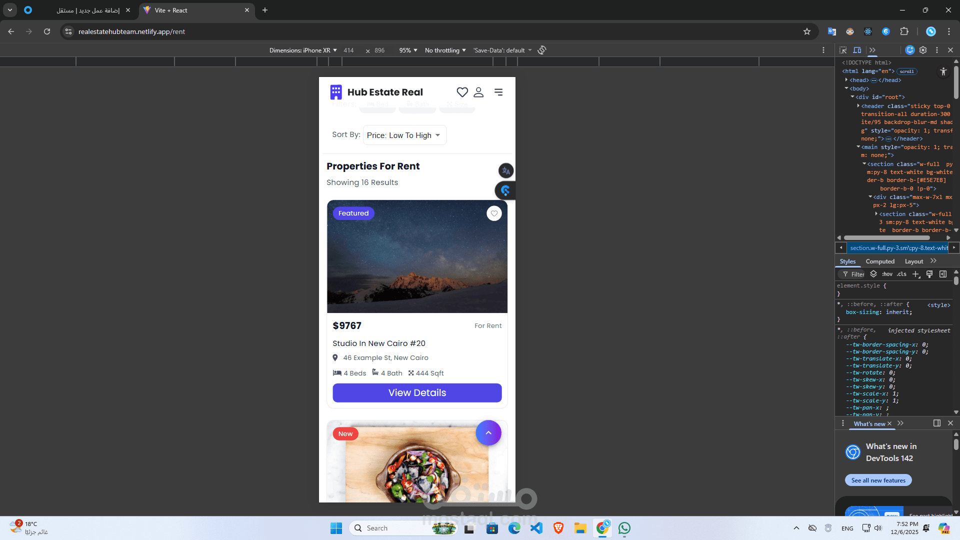 ساهمت في تطوير منصة عقارات احترافية، حيث ركزت على إنشاء واجهة سريعة، جذابة وسهلة الاستخدام تساعد العملاء على العثور على العقار المثالي بسرعة وكفاءة.