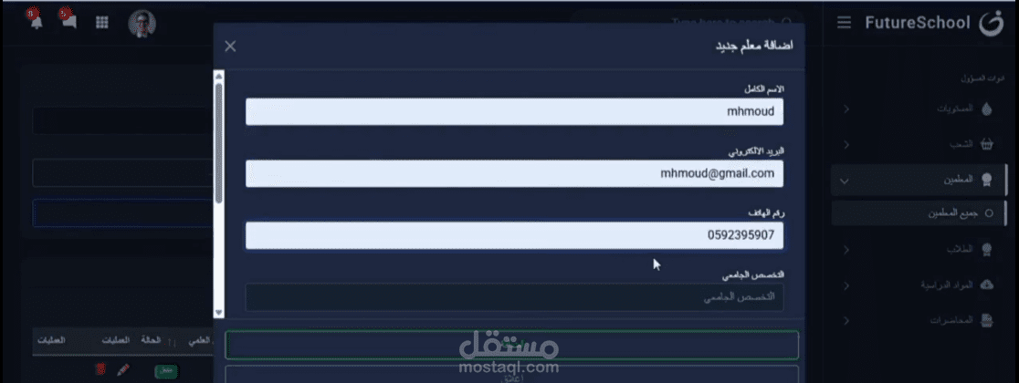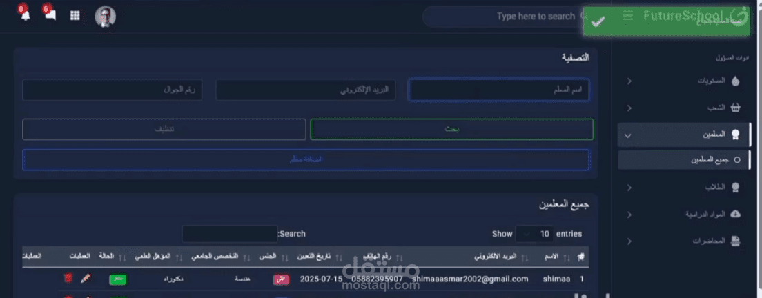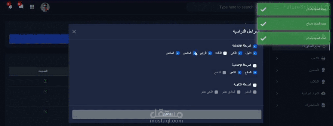 إدارة المواد ورفع المحتوى التعليمي ومتابعة الطلاب (للمعلم)