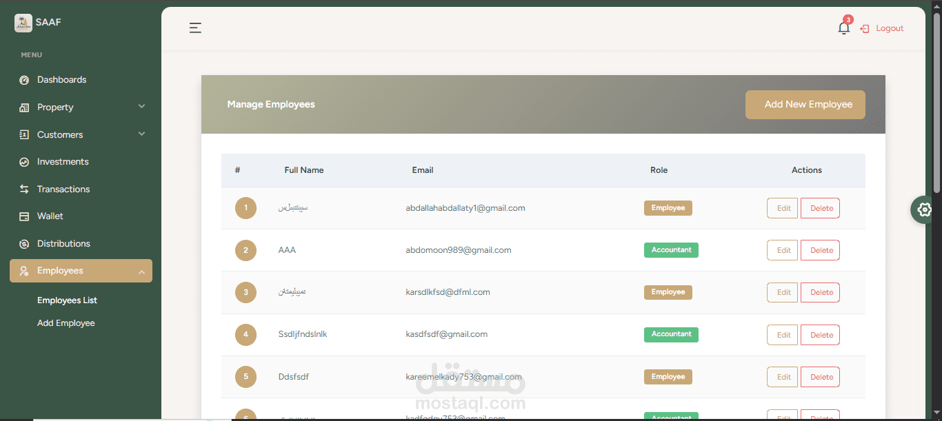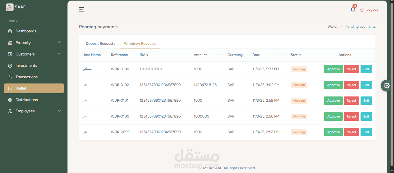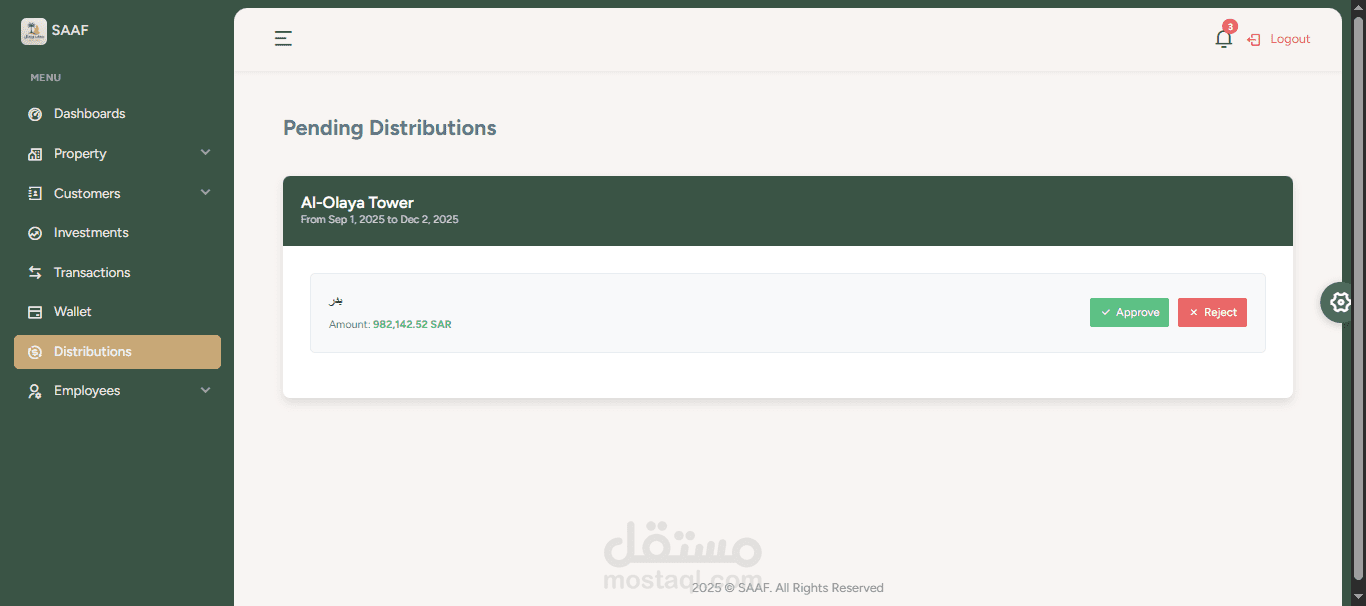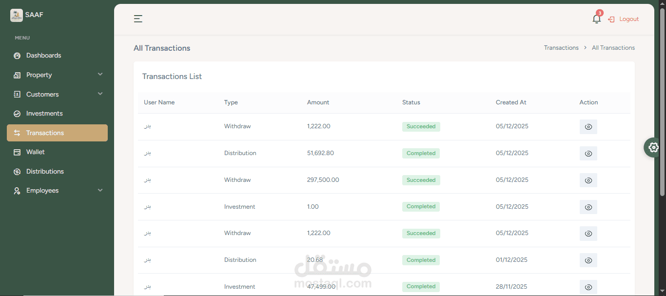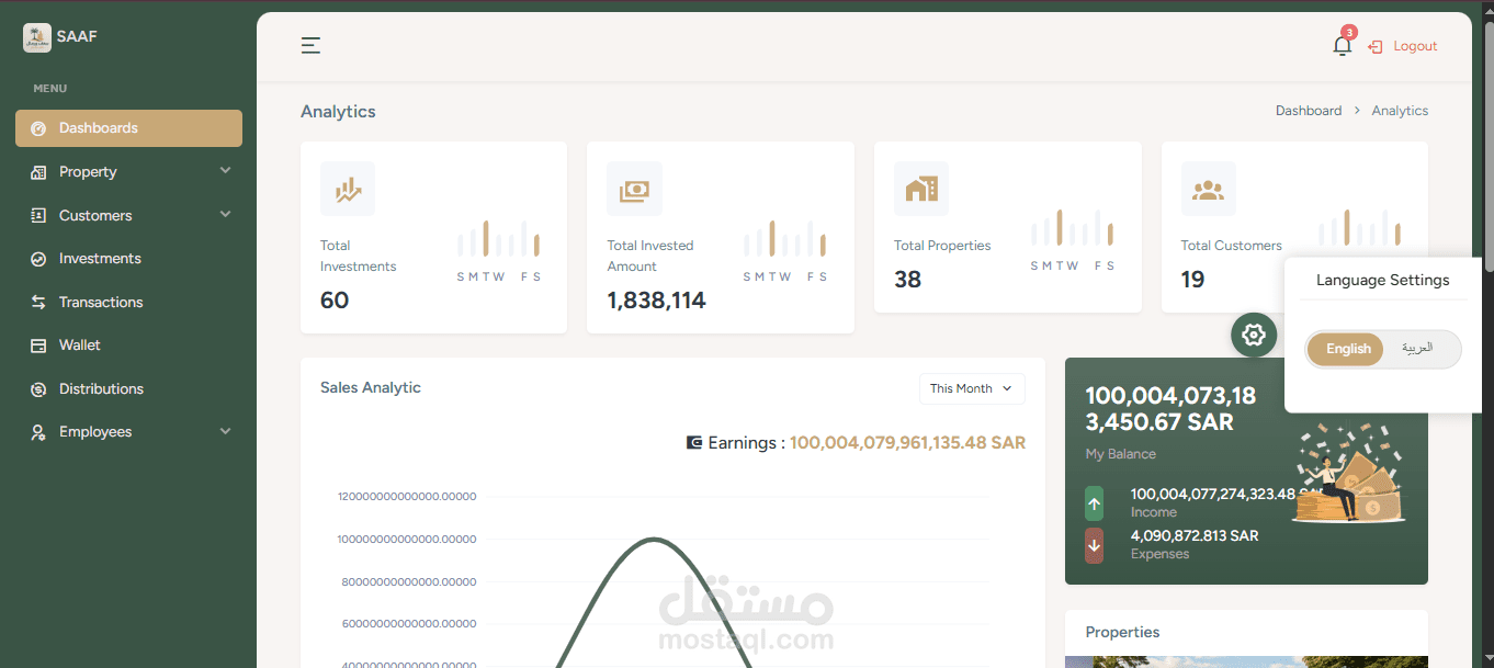 قمت بتطوير **Dashboard** لتطبيق **"سعف"**، الذي يركز على الاستثمار العقاري، باستخدام **MEAN Stack** (MongoDB, Express.js, Angular, Node.js).